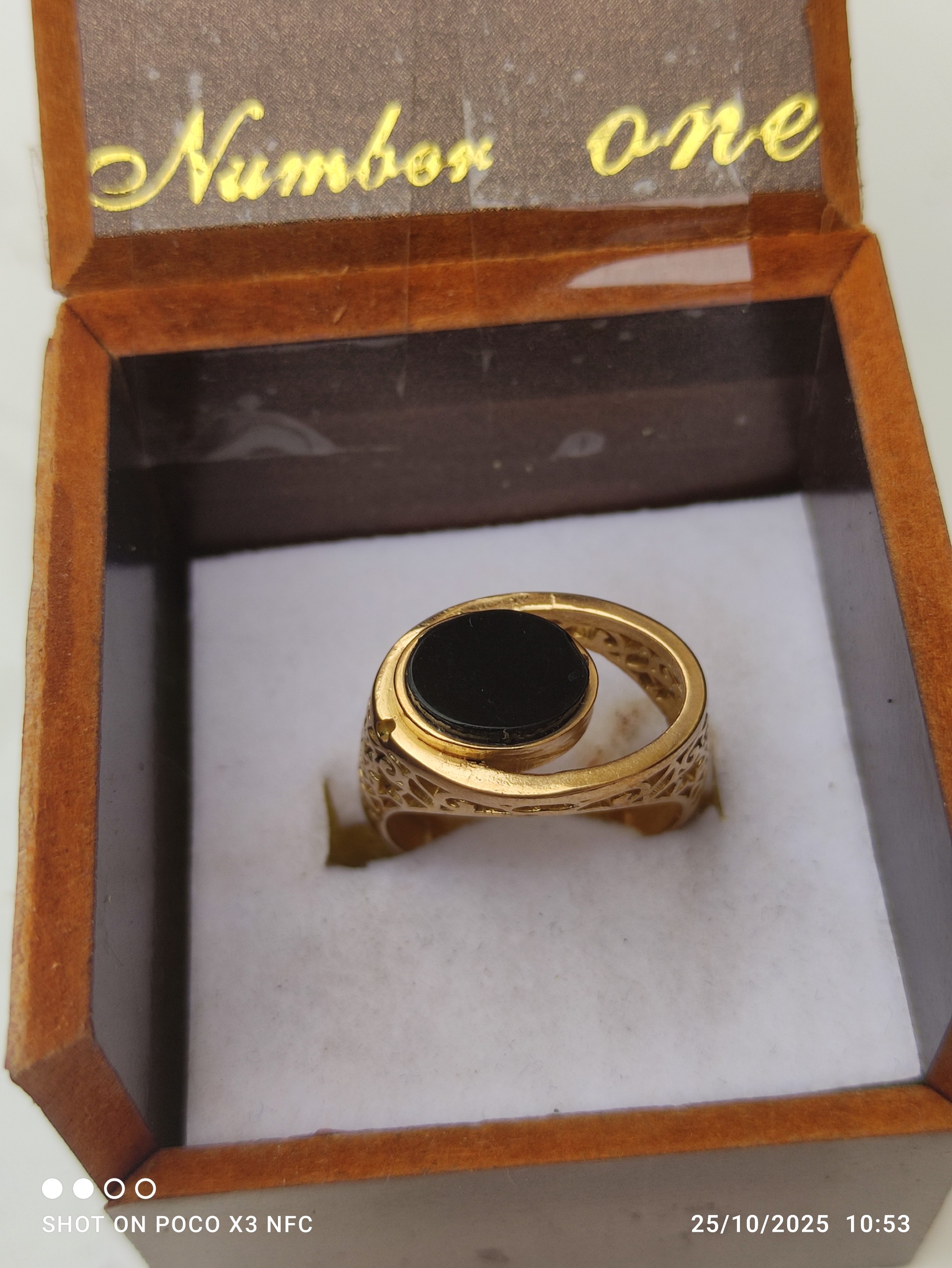 انگشتر رز گلد طلایی با کیفیت فوق العاده و رنگ ثابت با نگین مشکی رزینی