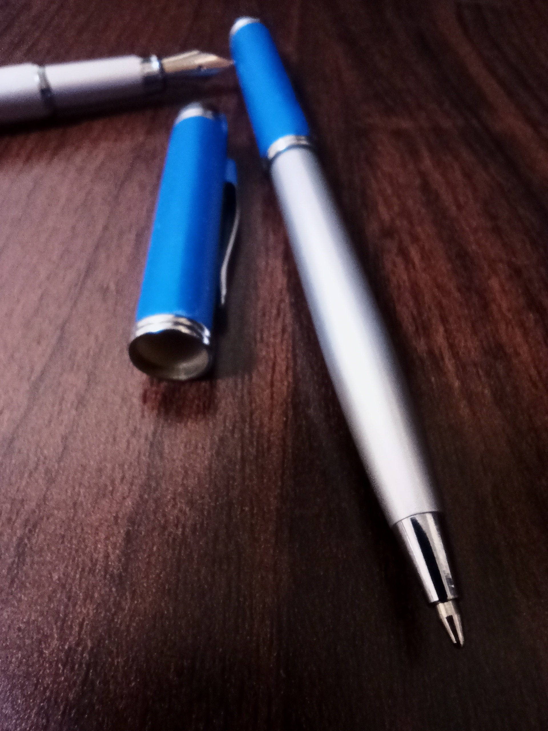 ست خودکار و خودنویس کاندید. رنگ آبی شیک. مناسب هدیه. با جلد مخملی. استفاده نشده، حتا یک بار. نه خودکار و نه خودنویس هیچ کدام جوهر ندارند. جلد مقوایی روی جعبه به علت ماندن در انبار مطابق عکس آسیب دیده که در صورت هدیه دادن باید آن را دور بندازید، ولی جعبه مخملی کاملن سالم است و البته خودکار و خودنویس هم دست نخورده اند.