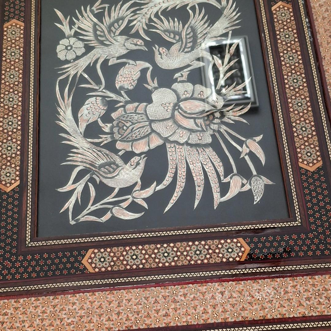 قاب خاتم کاری اصفهان طرح گل و مرغ قلم زنی مس .