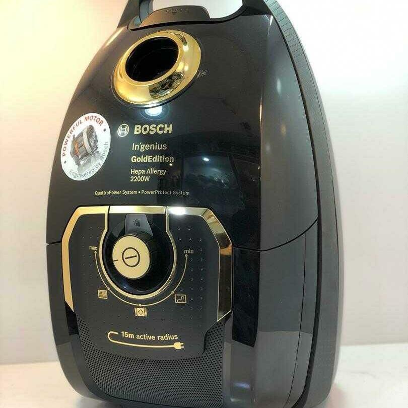 سری In Genius Gold Edition مدل BGL8GOLDIR با رنگ مشکی و طلایی یکی از زیباترین و پرفروشترین مدلهای جاروبرقی شرکت بوش آلمان است. برای جلوگیری از ایجاد خط و خش روی بدنه جاروبرقی از دستمال خشک برای تمیز کردن آن استفاده نکنید. برای این کار، باید اول خاک روی جارو را با فوت بزدائید و بعد با دستمال مرطوب به آرامی آن را تمیز کنید. از آنجایی که بدنه این محصول براق است،گردوغبار روی آن میتواند خشهایی بر روی سطح آن ایجاد کند که در طول زمان باعث کاهش زیبایی و درخشش این جاروبرقی میشود.