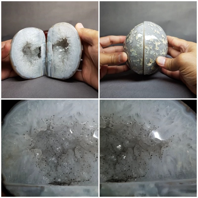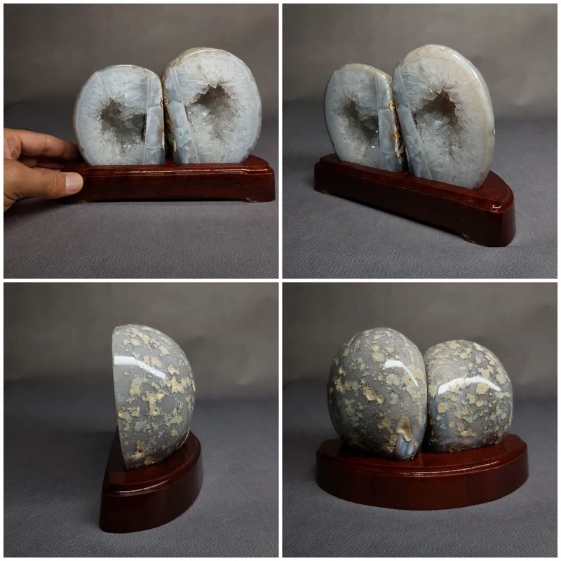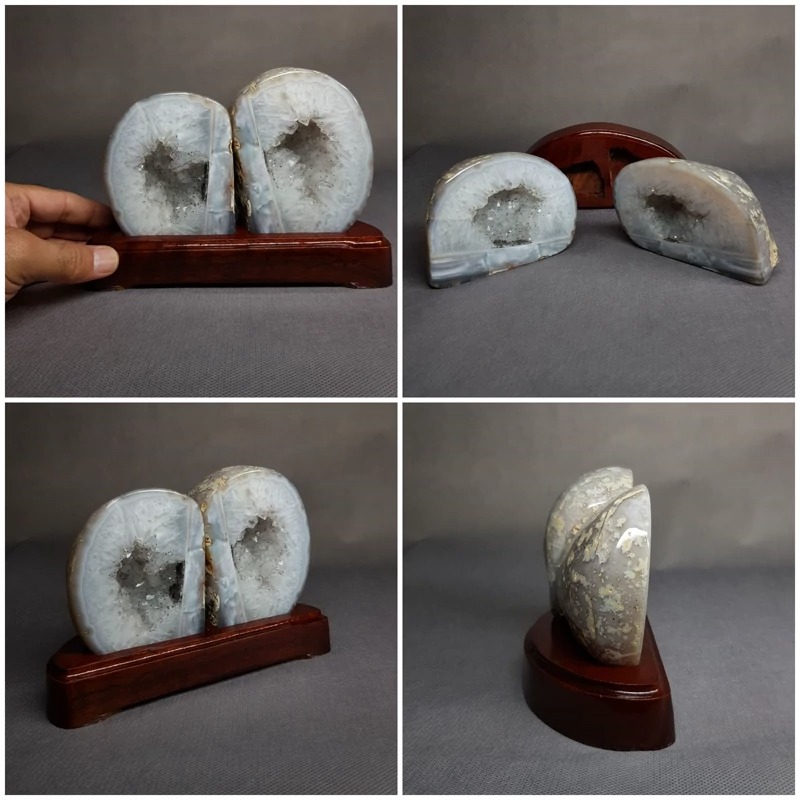 گوهر سنگ ژئود برزیلی نصب شده روی پایه چوبی نفیس
