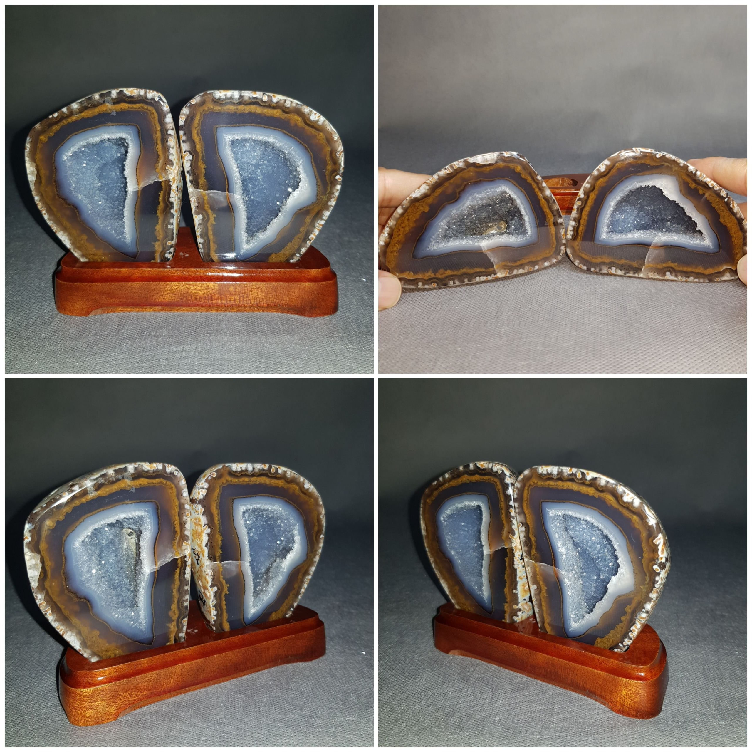 گوهر سنگ ژئود برزیلی نصب شده روی پایه چوبی نفیس