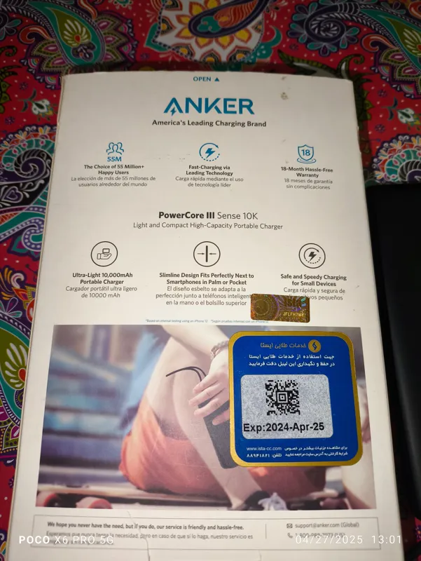 پاور بانک انکر مدل POWER CORE SUPER SLIM A1244H11 ظرفیت 10000