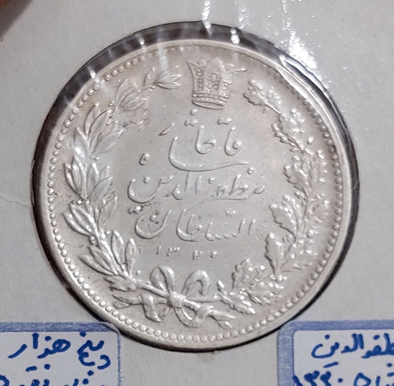 سکه نقره 5000 دینار خطی مظفرالدین شاه