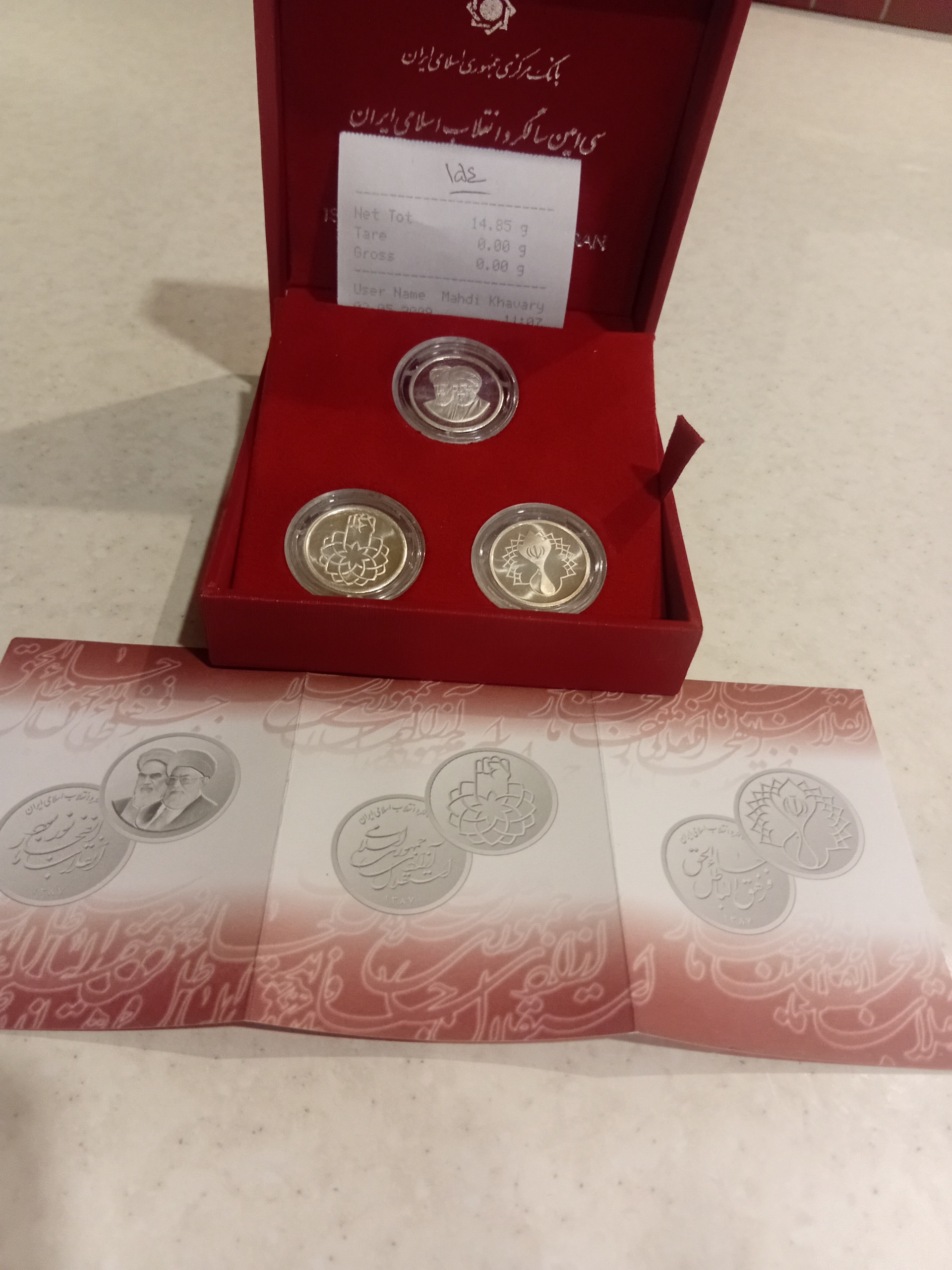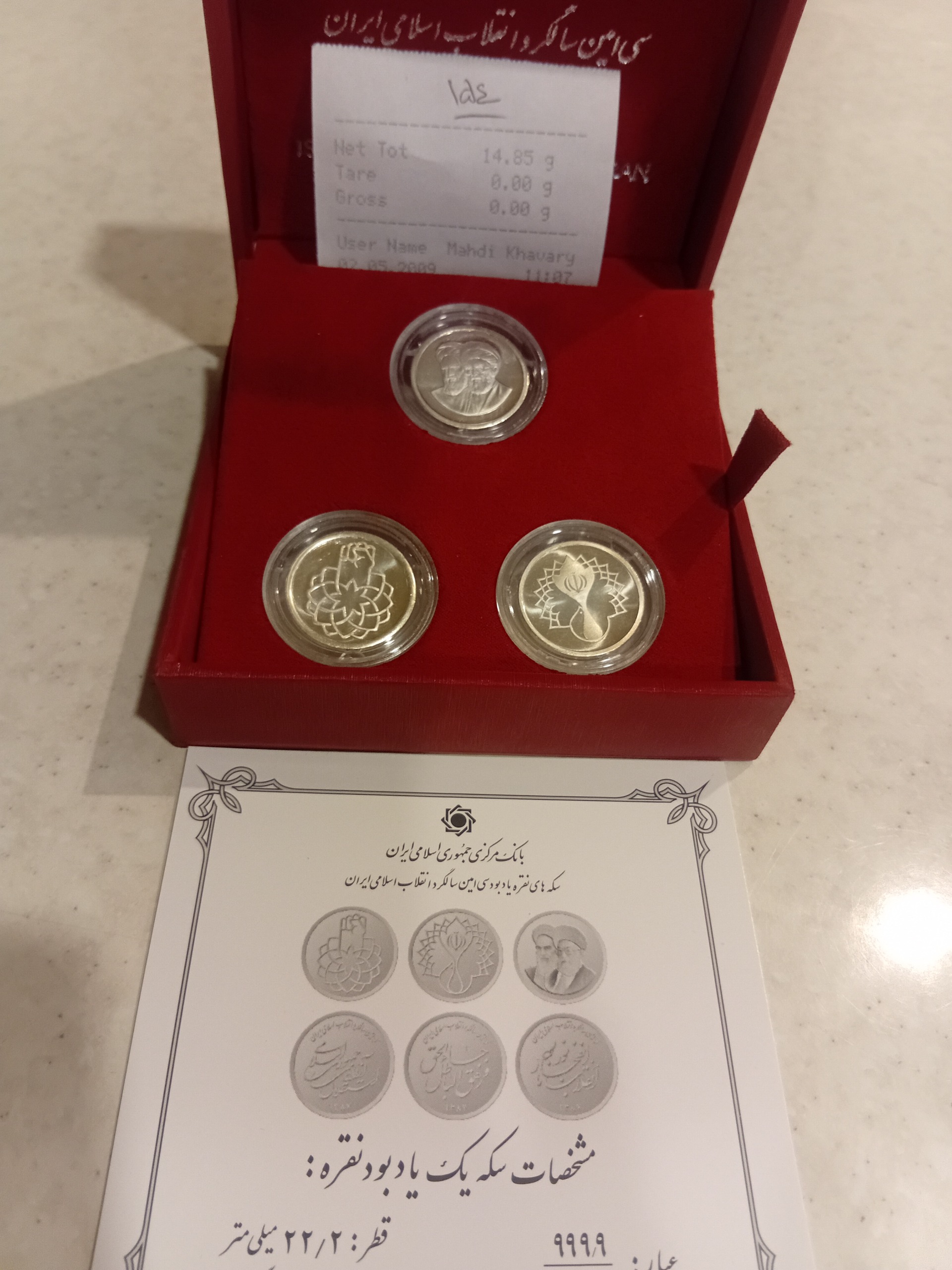 سری یادبود سی امین سالگرد پیروزی انقلاب اسلامی ایران با جعبه فابریک ، نقره 999 (خالص) بهمراه شناسنامه ، نو و بانکی ، ضرب بانک مرکزی ایران . وزن 3 سکه 85/ 14 گرم ، قطر هر سکه 2/ 22 mm. کیفیت کالا مطابق تصاویر میباشد ، شما را دعوت به بازدید از فروشگاه ما می نماییم ، سلامت باشید .