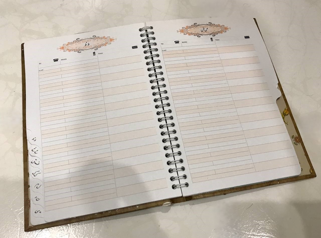 دو عدد دفتر تلفن جلد اکلیلی با طرح گل و مرغ