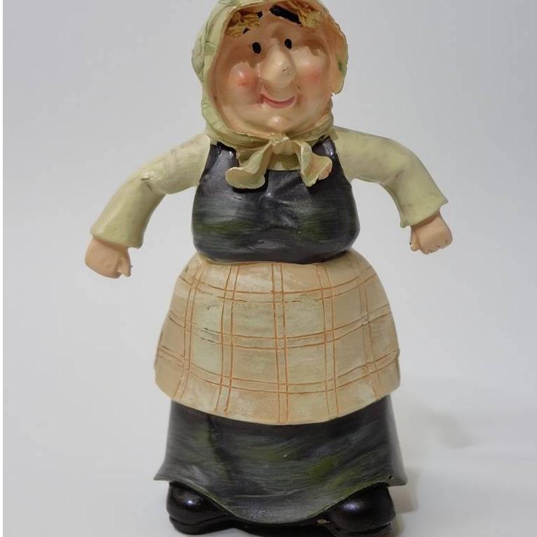 مجسمه پلی استر پیر زن کشاورز اروپایی به ارتفاع 14 سانت.نوک بینی یه پریدگی خیلی ریز دارد.