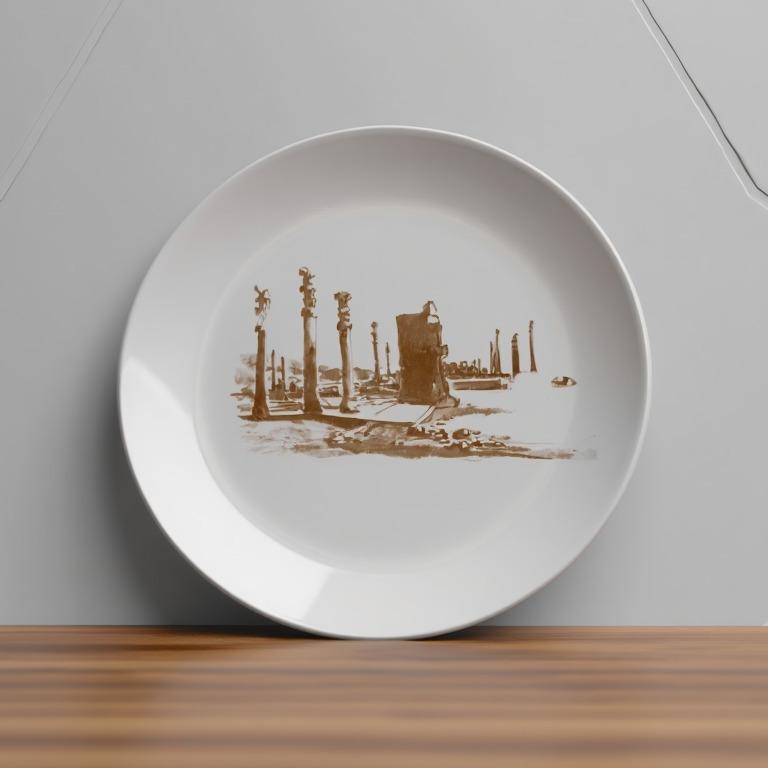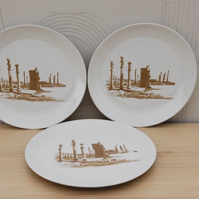 3 عدد بشقاب چینی قدیمی با نقش تخت جمشید.قطر بشقابها 17 سانت. یکی از بشقابها لب پر ریز دارد .