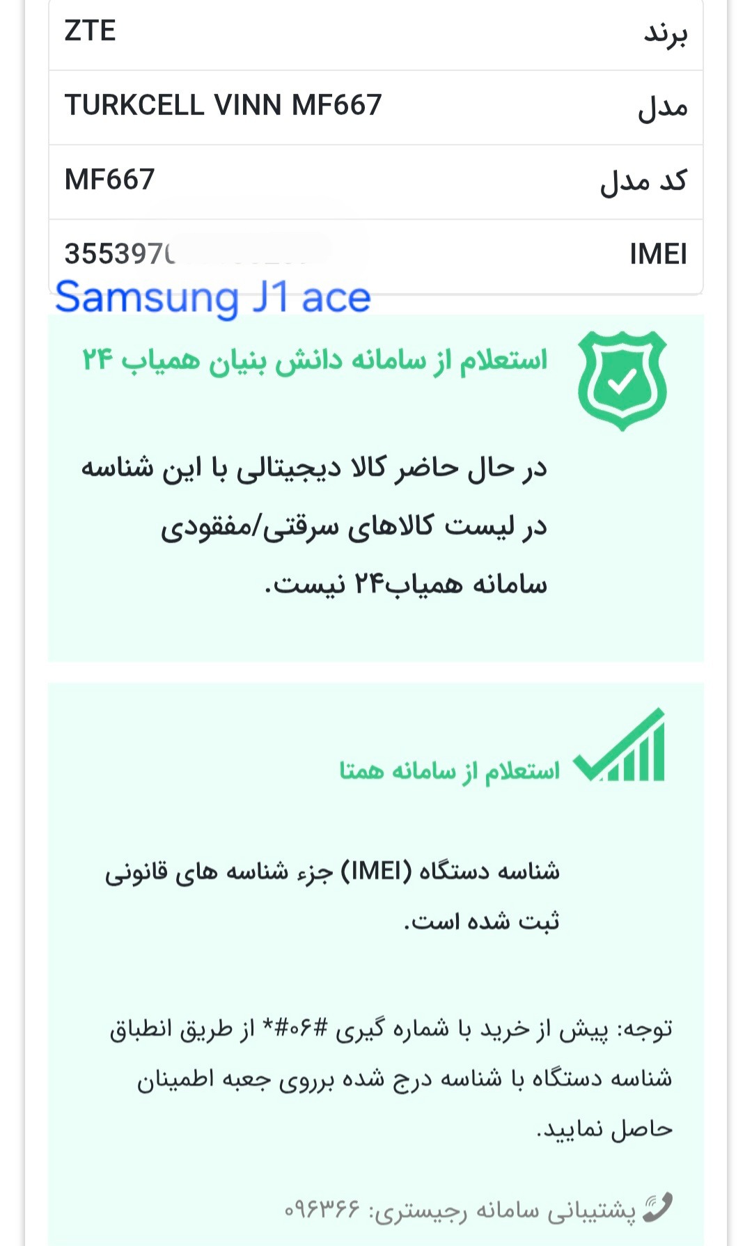 گوشی موبایل لمسی سامسونگ J1 ace جی وان دوسیم رم خور سیستم عامل اندروید ورژن 4 / سالم و قابل استفاده شاسی تعویض تمیز / رجیستر شده و ثبت شده در سامانه همتا / به همراه باتری و شارژر و کاور ژله ای و درب پشتی باتری اضافی و فاکتور خرید ارسال میگردد / فاقد انتقال مالکیت و فاقد جعبه.