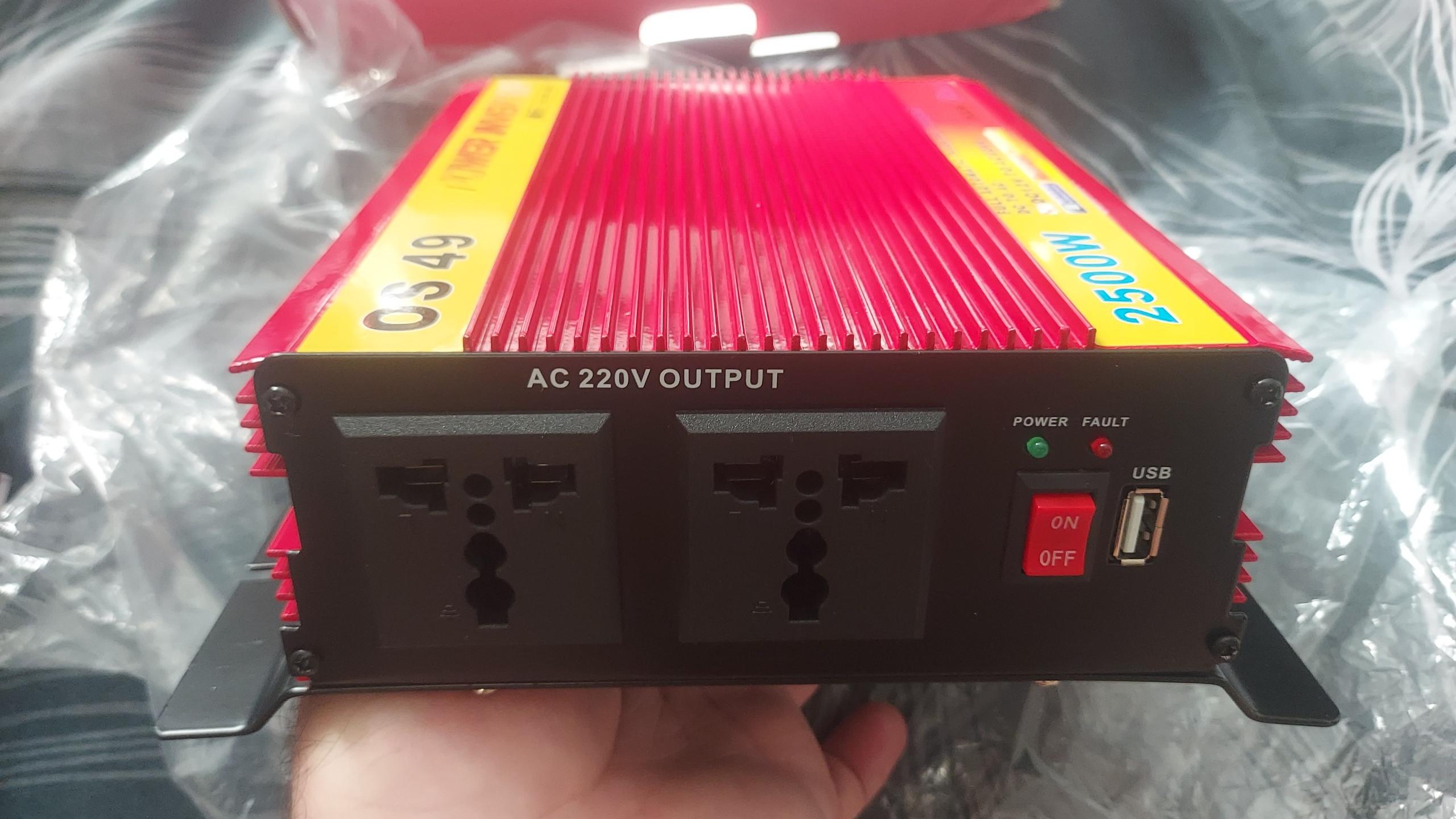 اینورتر دوم خروجی usb +سه شاخه ~دو شاخه برق یک عدد داره فن داره و کلید آف و آن قدرتش 1000 وات و شبه سینوسی موج ac ولتاژ 220ولت