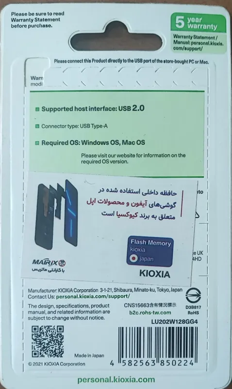 فلش مموری Kioxia 128G USB2 با گارانتی ماتریکس