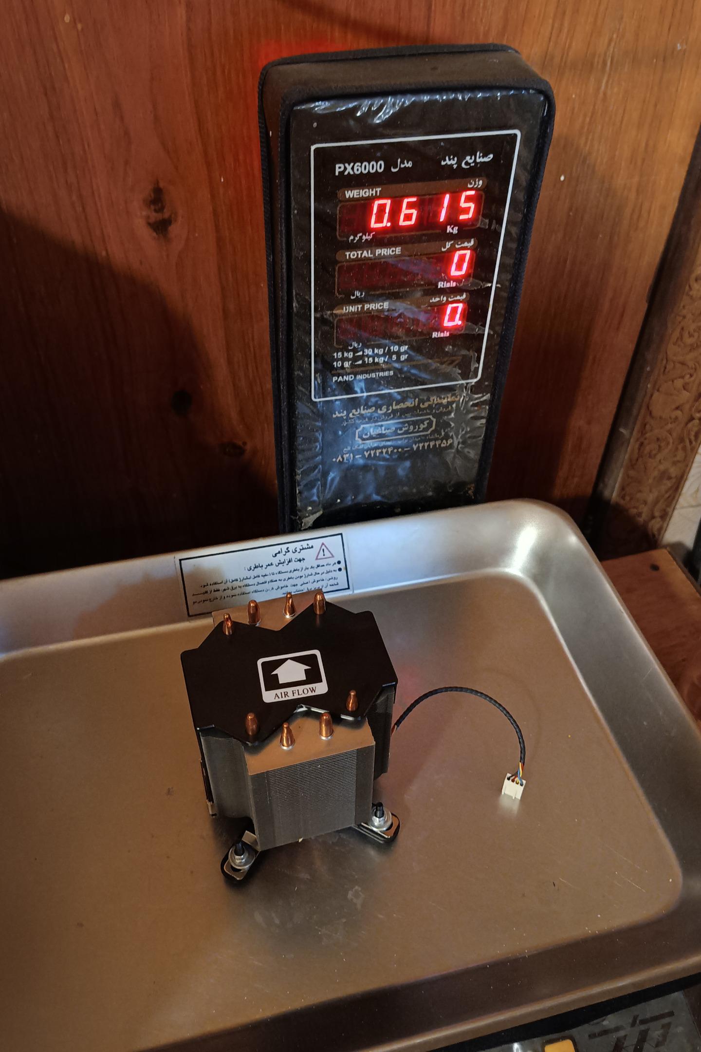 وزن سنگین 615 گرمی (وزن بیشتر Heatsink به ظرفیت گرمایی بیشتر کمک میکنه و در نتیجه دما پایین تر میاد.)