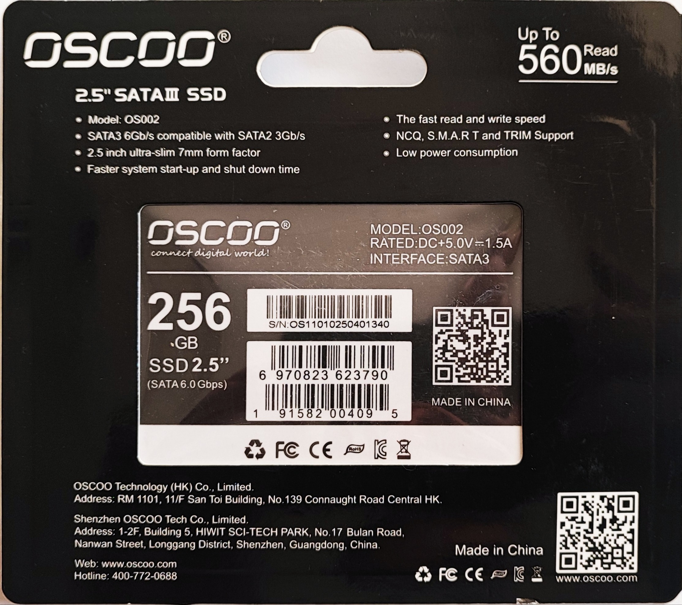 SSD 256G sata Oscoo Black