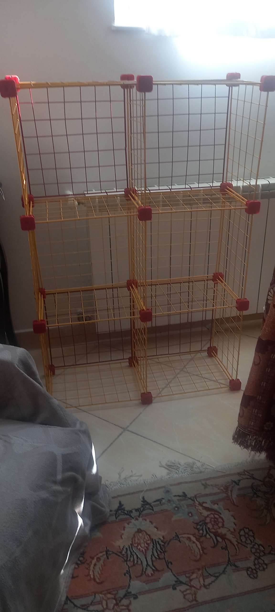 قفسه مشبک از اجناس تولید اول خیلی صخیم وبا دوام که کار نکرده وداخل جعبه بود بعضا خیلی خیلی جزئی جزئی رنگ پریدگی دیده میشود سایز صفحه ها در دوسایز25 در32 وسایز32 در 32 میباشد واز سایز25 در 32 بیست عددد واز سایز 32 در32 شش عدد موجود میباشد وتعداد 32 عدد