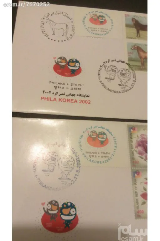 2 پاکت مهر روز اورجینال نمایشگاه تمبر کره 1381 توض