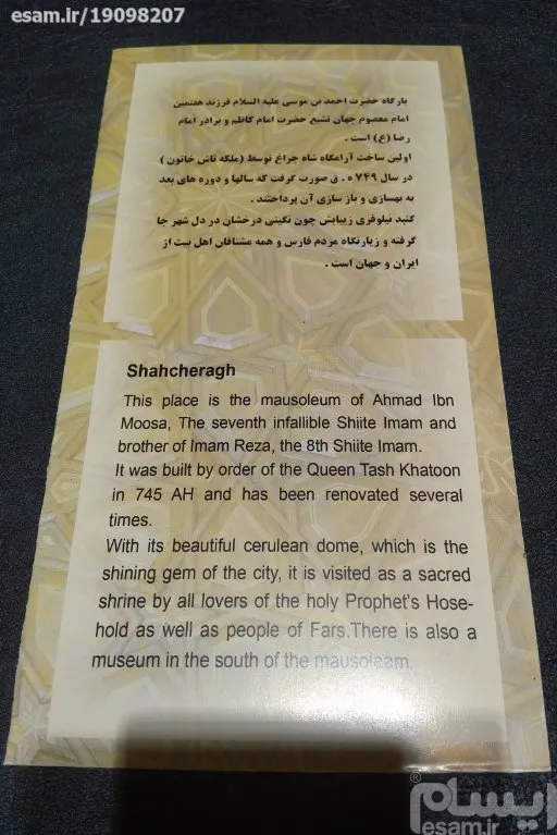 پاکت و کارت اورجینال شاهچراغ 1389 چاپ پست