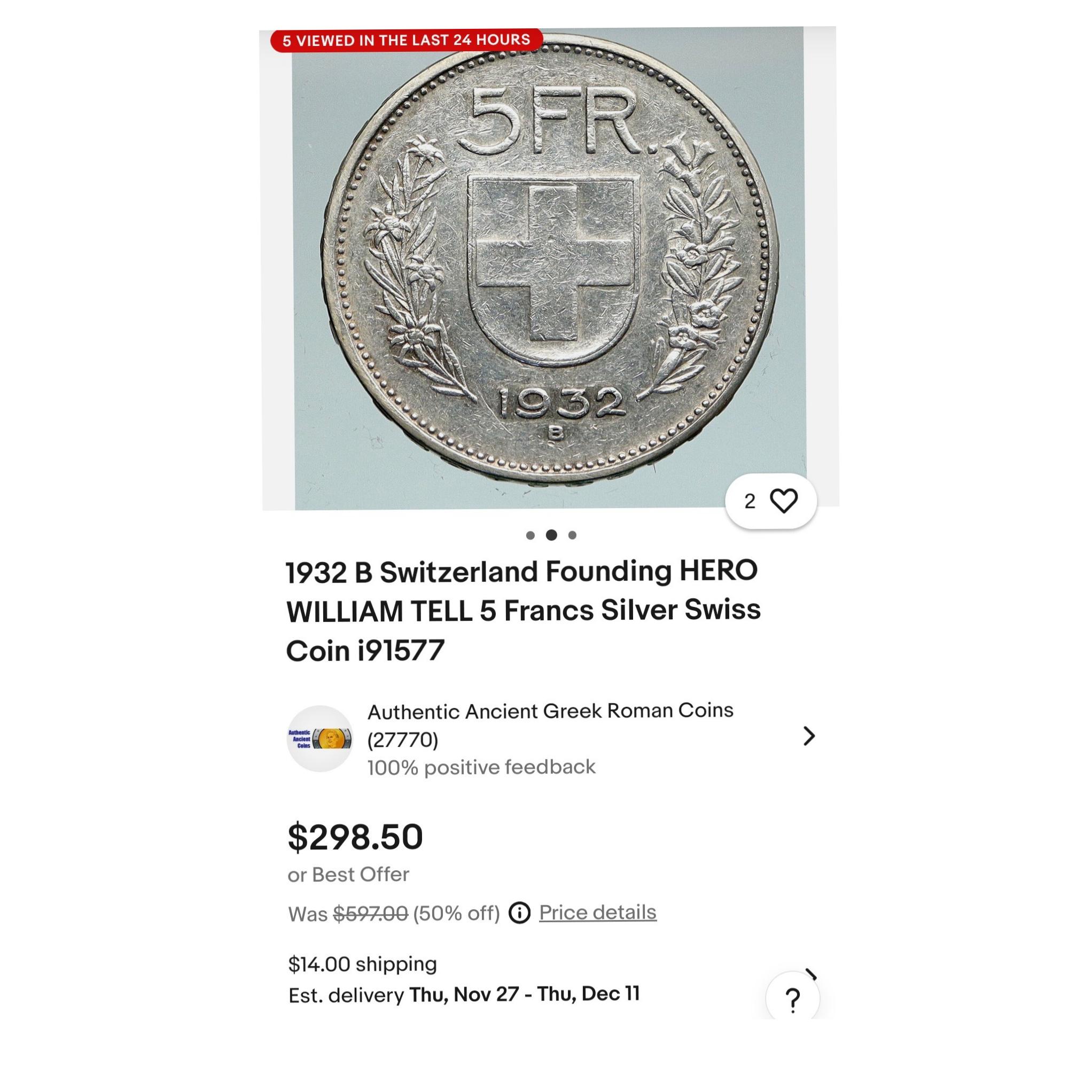 سکه فرانک سوئیس اصل 1932 کمیاب و سالم