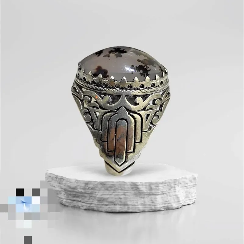 انگشترنقره مردانه عقیق شجر معدنی قائن