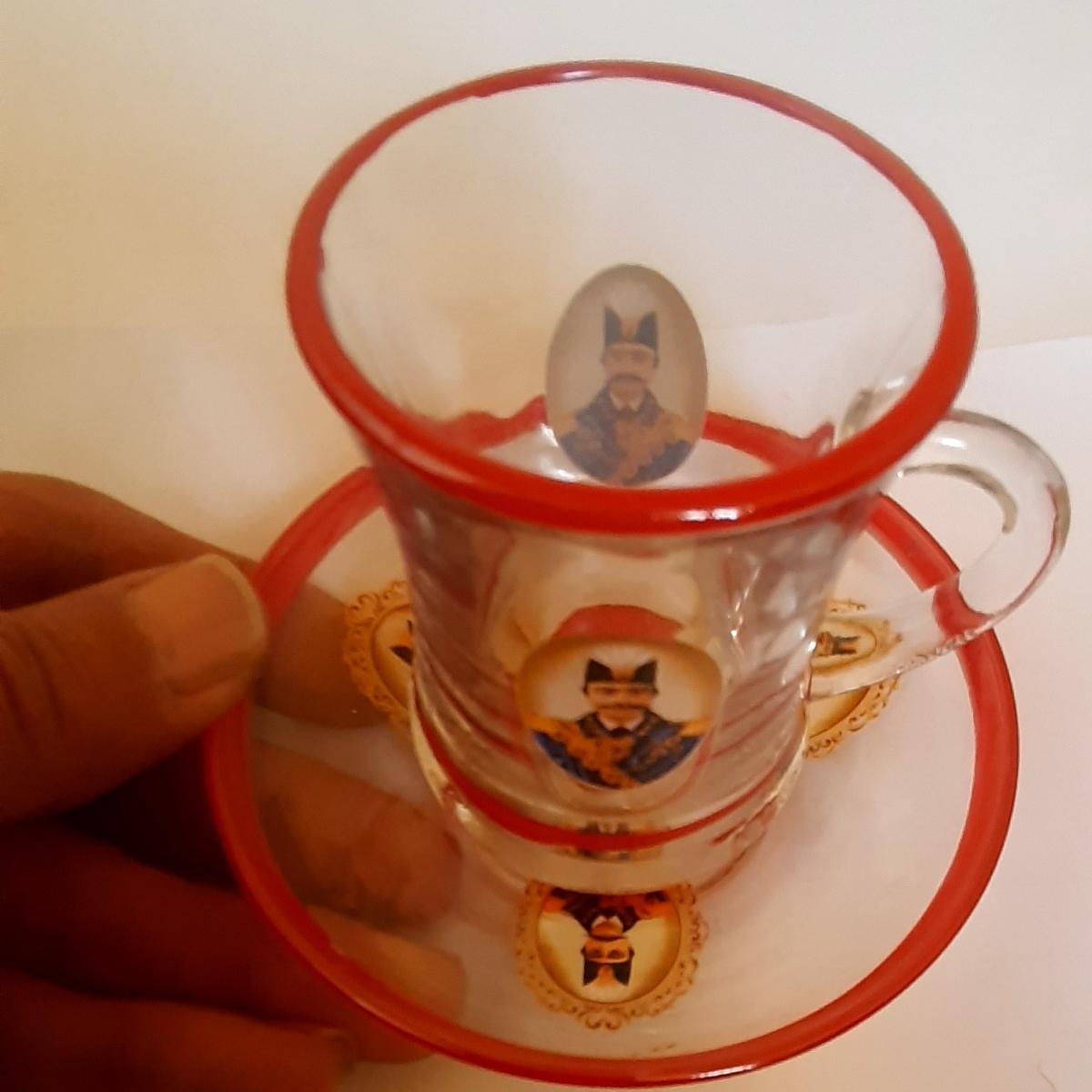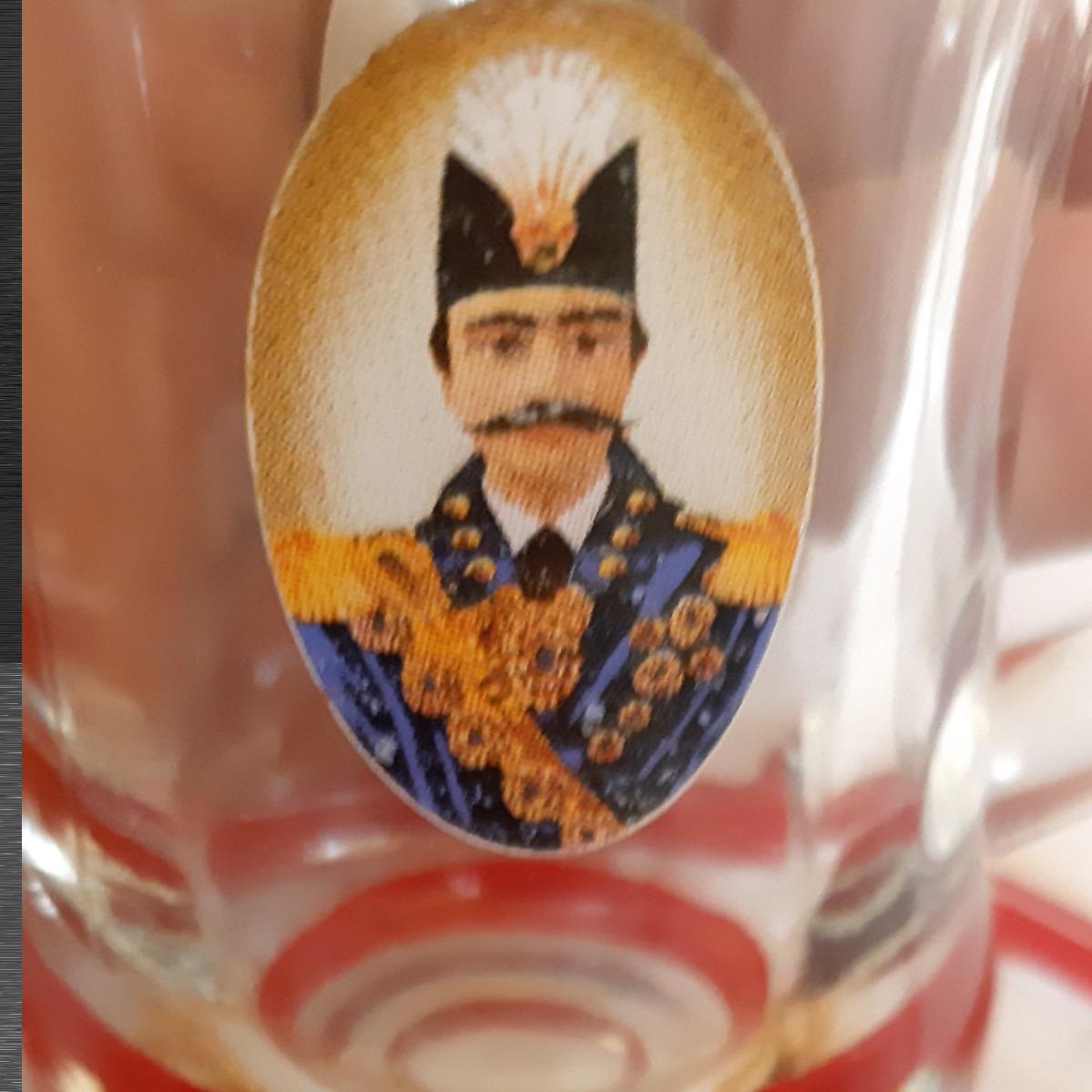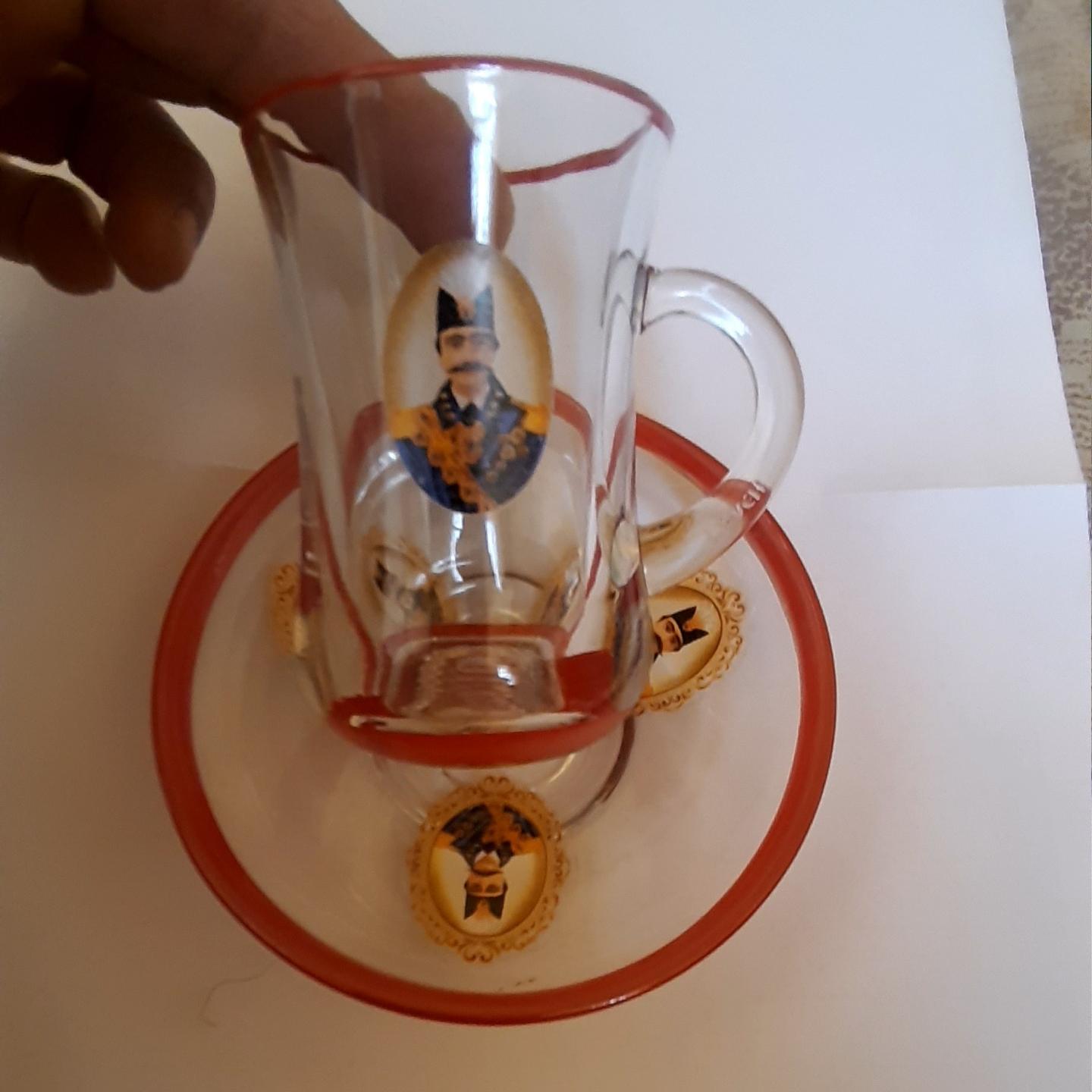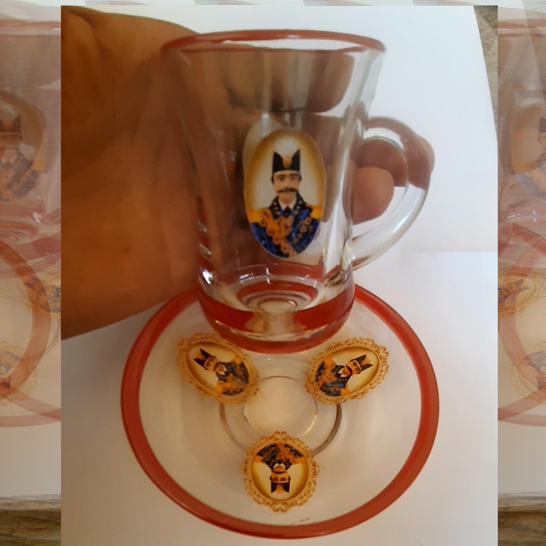 نعلبکی دارای 3 تصویر ناصری و استکان دو تصویر که دوطرف بیرونی ظرف حک و چاپ (تقریبا برجسته) شده اند