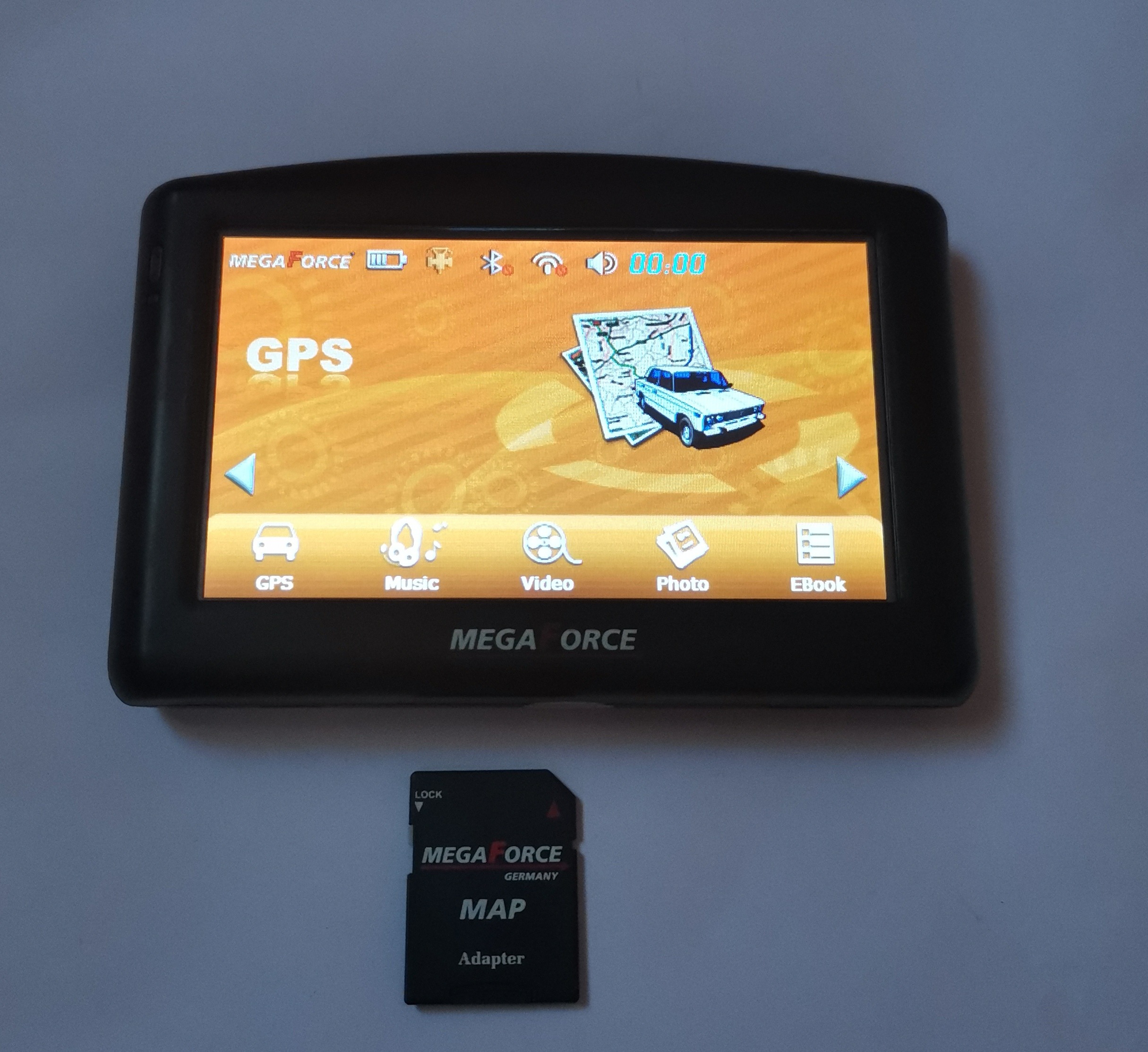 این دستگاه یک سیستم ناوبری GPS خودرو با برند MEGAFORCE و مدل F41 است که توسط یک شرکت آلمانی توسعه یافته است.