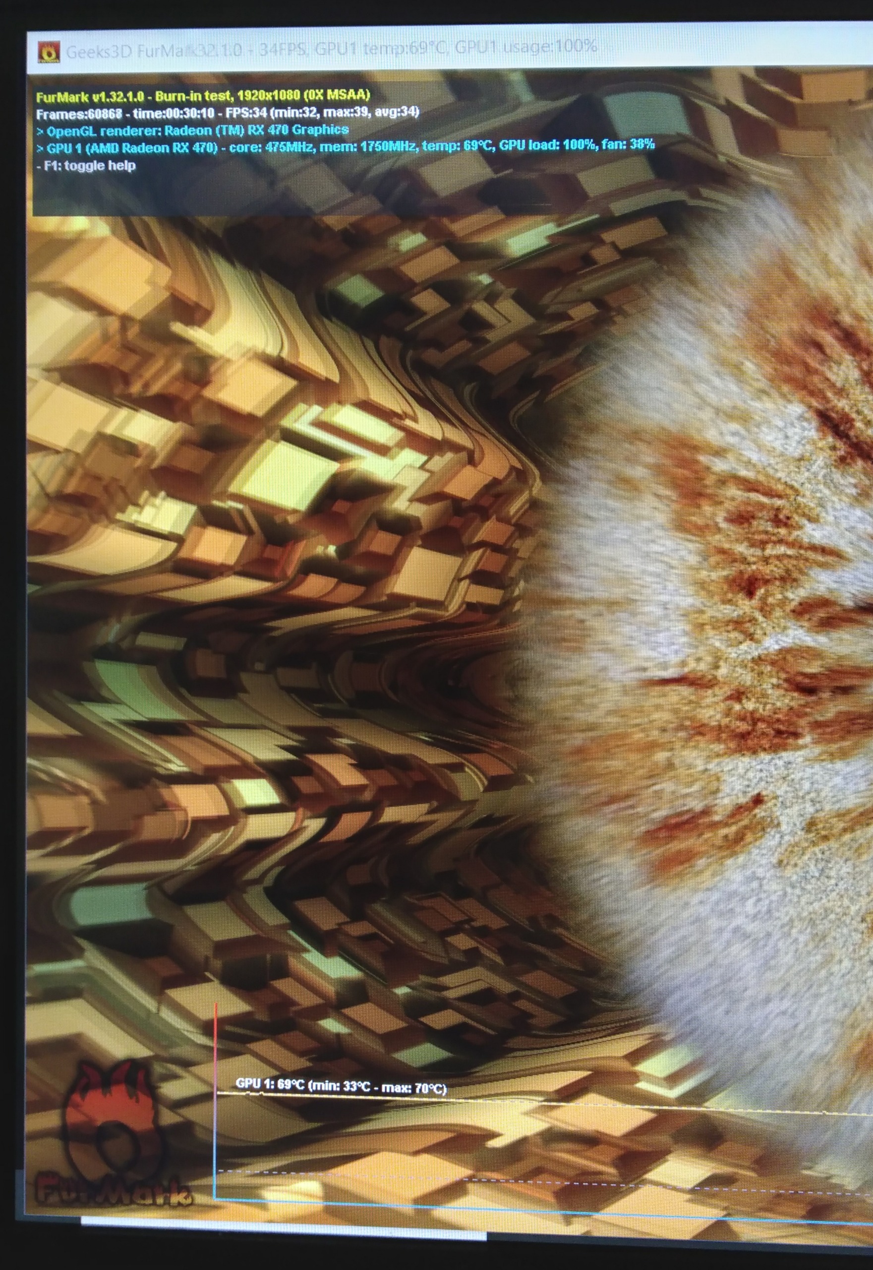 نتیجه تست فورمارک که نهایت فشار وارد شده به گرافیک در حدود 30 دقیقه و رزولیشن 1920*1080 FHD که در عکس آخر قرار داده شده (مشاهده فرمایید) دما کارت نهایت به 69 درجه میرسه که نشان از سلامت گرافیک میباشد