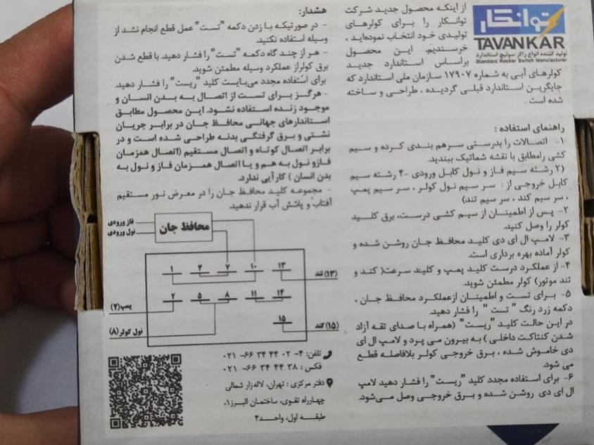 کلید کولر آبی توانکار مدل محافظ جان دار