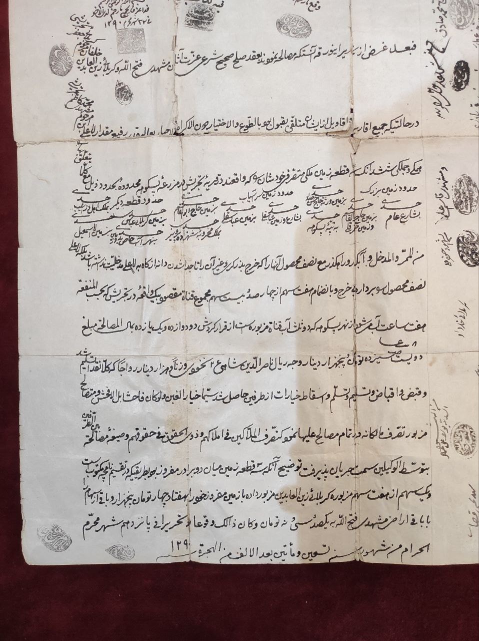 سند مصالحهی خاص واقع در ملک سه قطعه زمین در تجریش تهران که در این زمان قریهی (روستا) تجریش بوده