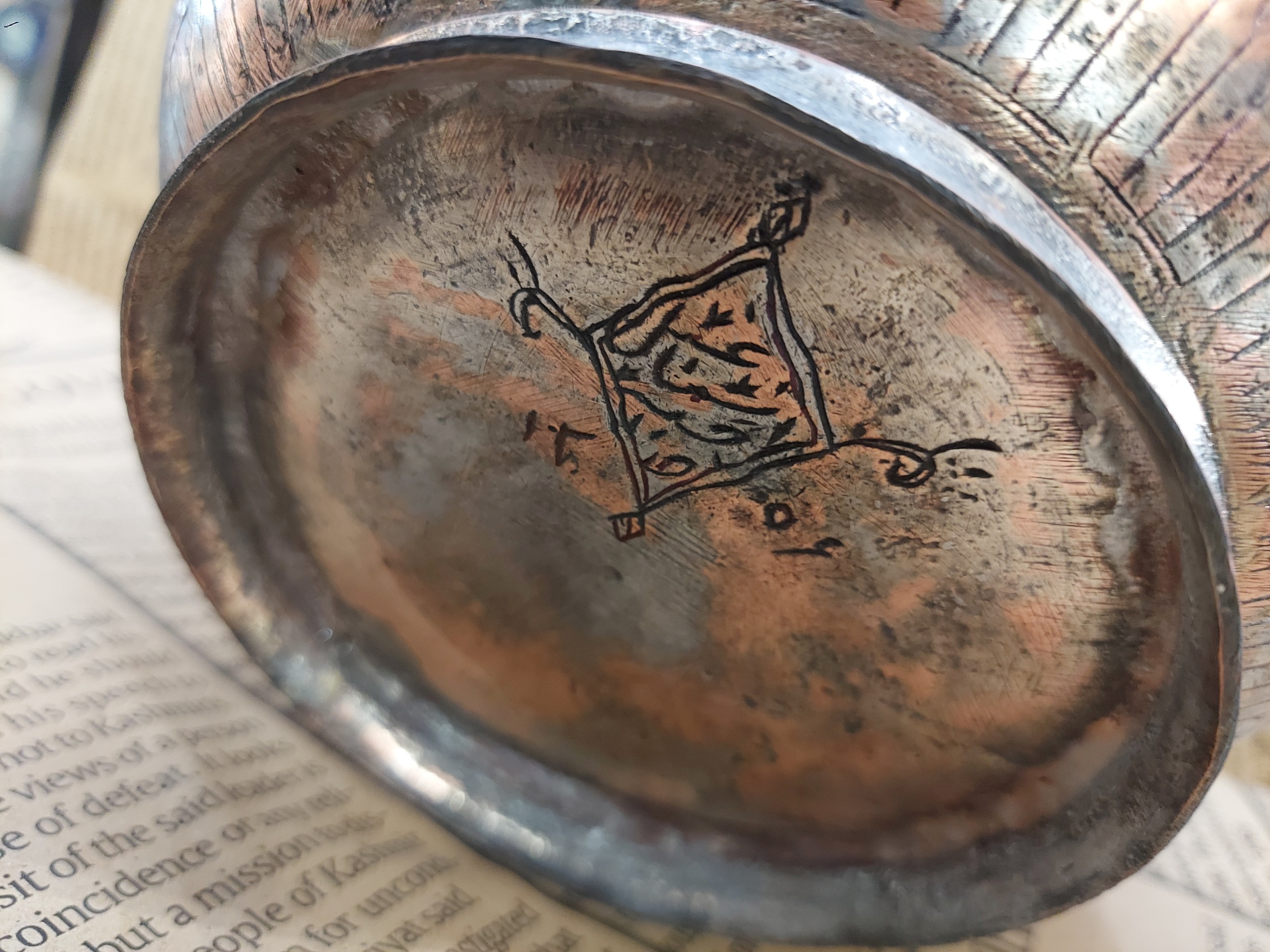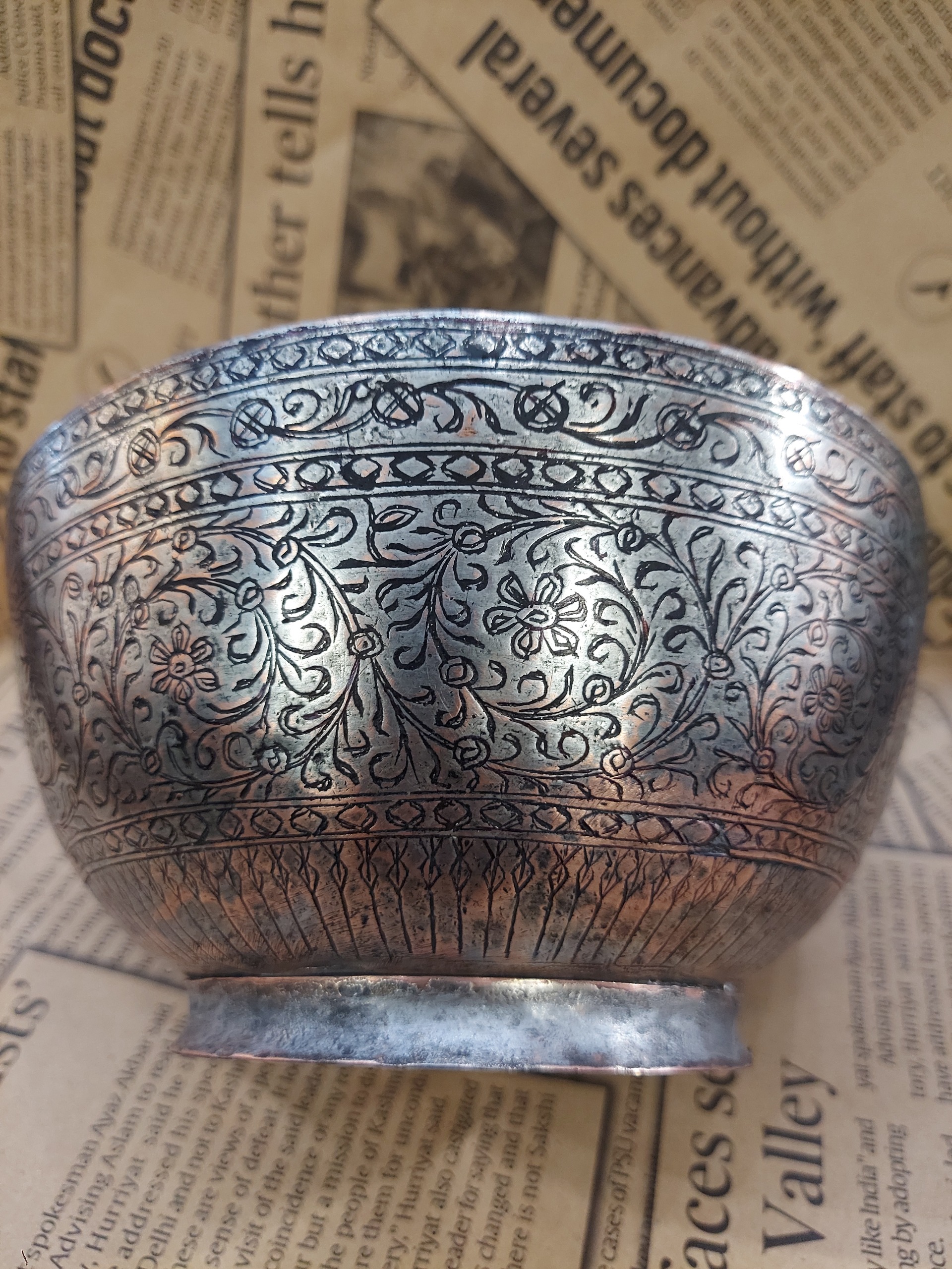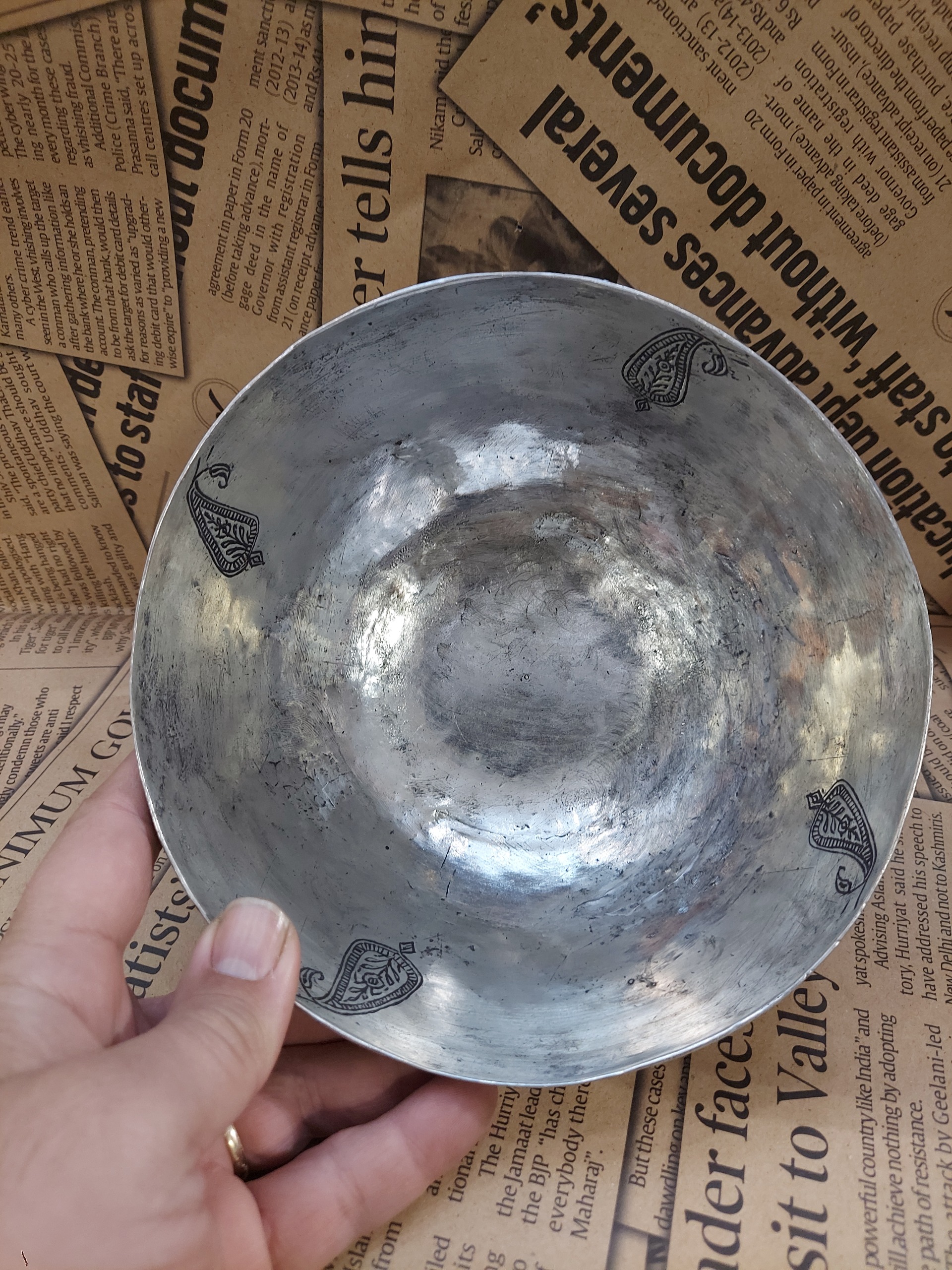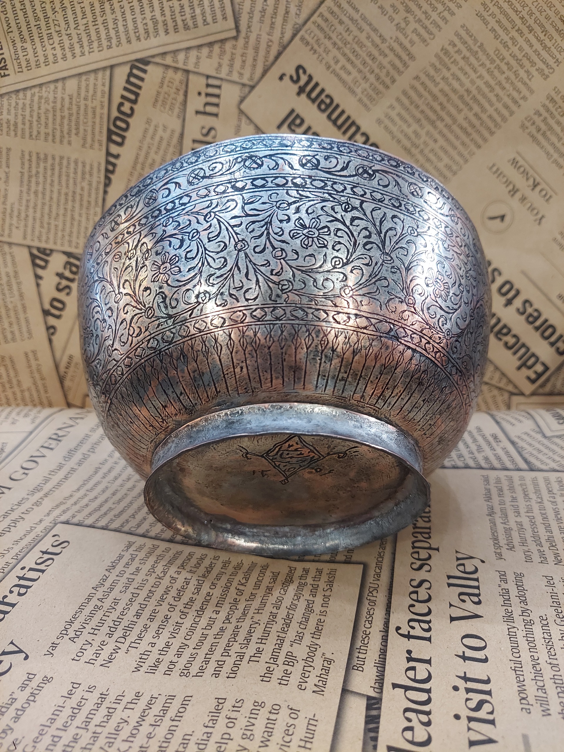 کاسه مسی تمام قلم قاجاری تاریخ دار و صاحبه دار
