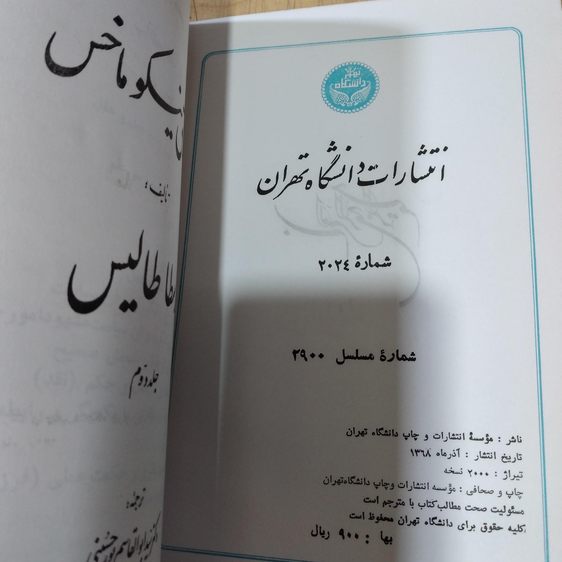 اخلاق نیکو ماخس _تألیف ارسطا طالیس _ جلد دوم