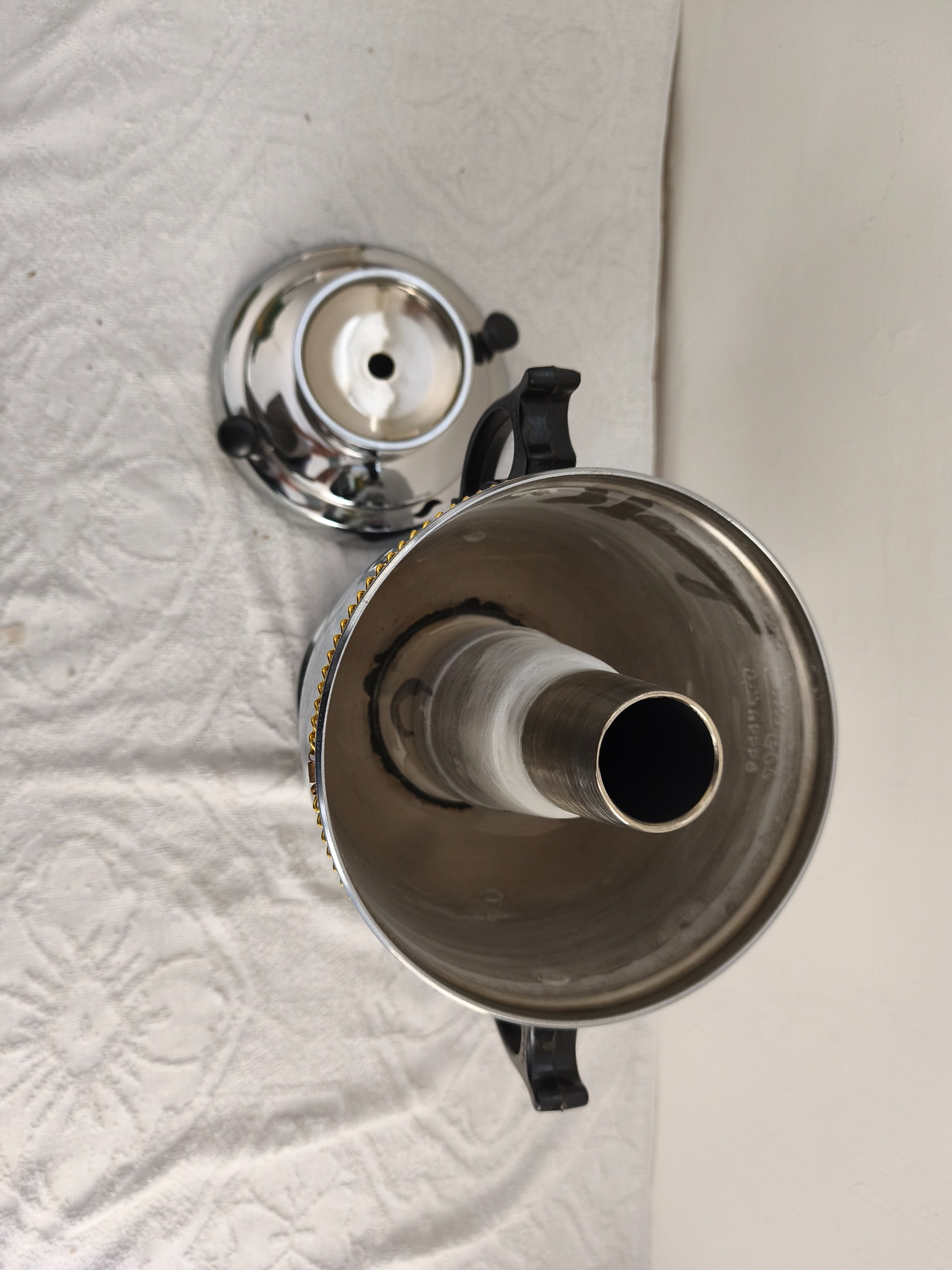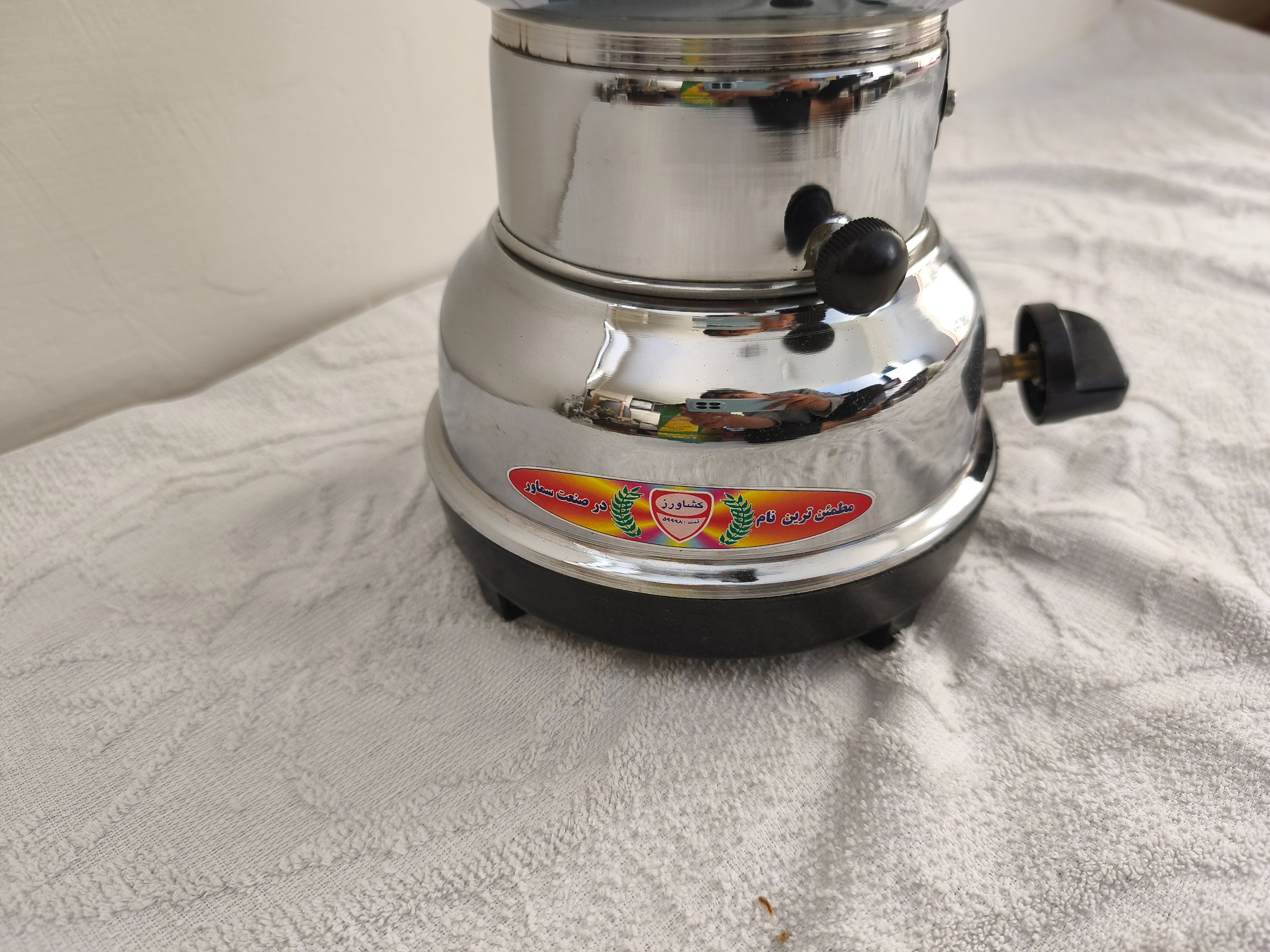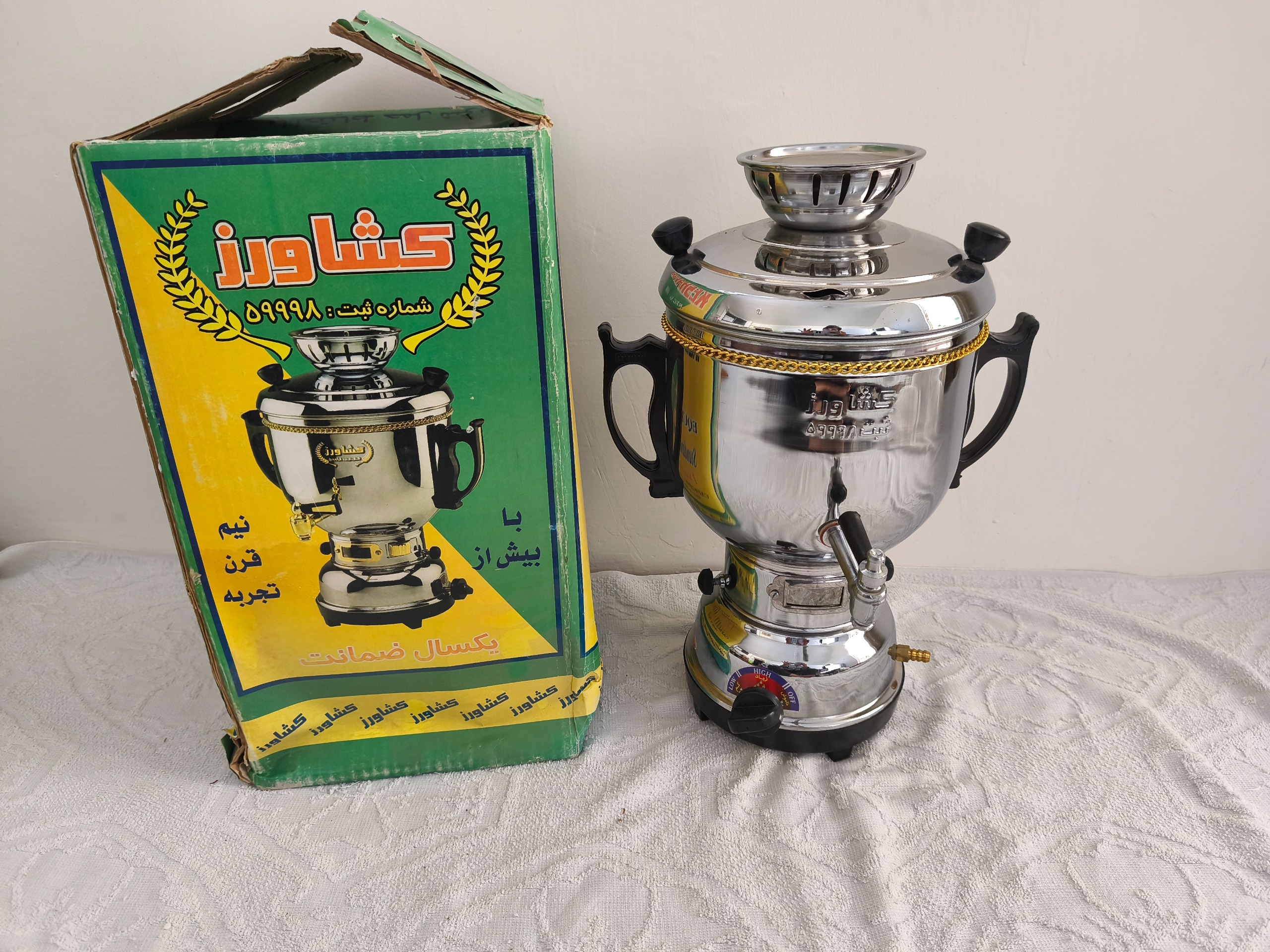 سماور گازی مارک کشاورز . درحد نو هست یکی دوبار استفاده شده . سالم و بی عیب و نقص . دارای جعبه . 6لیتری