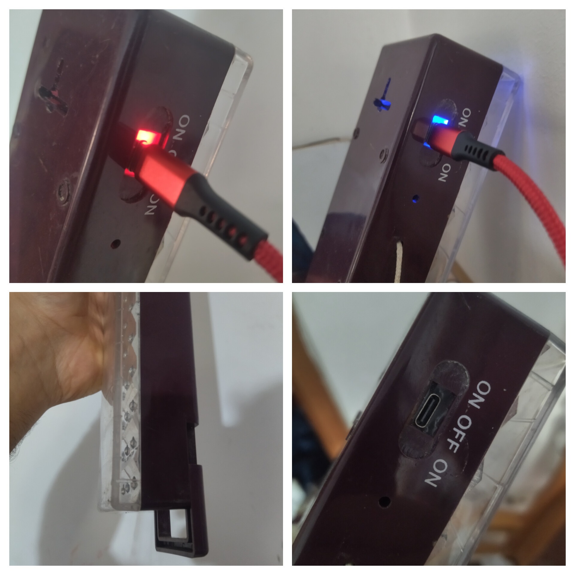 همانطور که در عکس ها میبینید موقع شارژ چراغ شارژر قرمز هست و بعد از تکمیل شارژ باتری چراغ شارژر آبی میشه