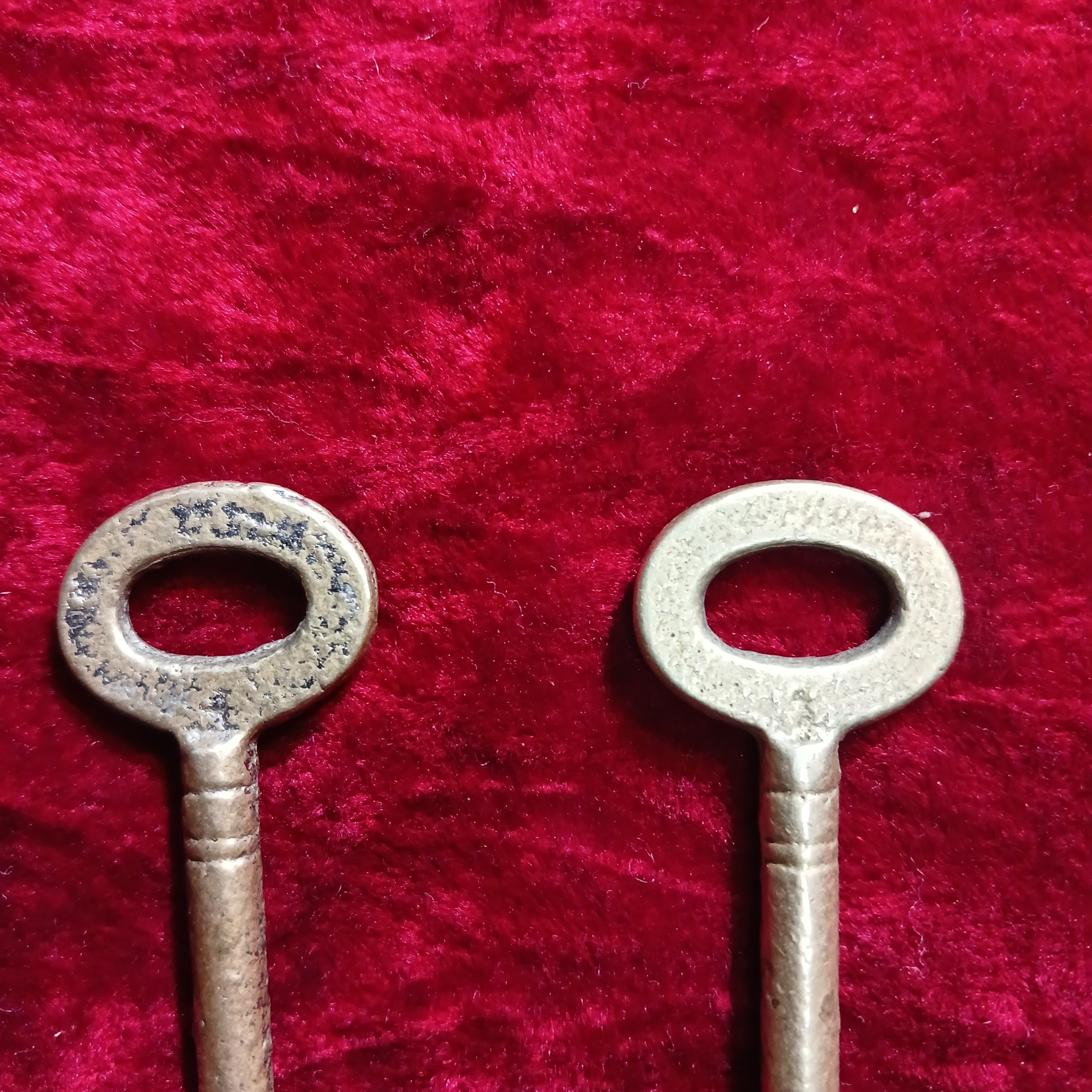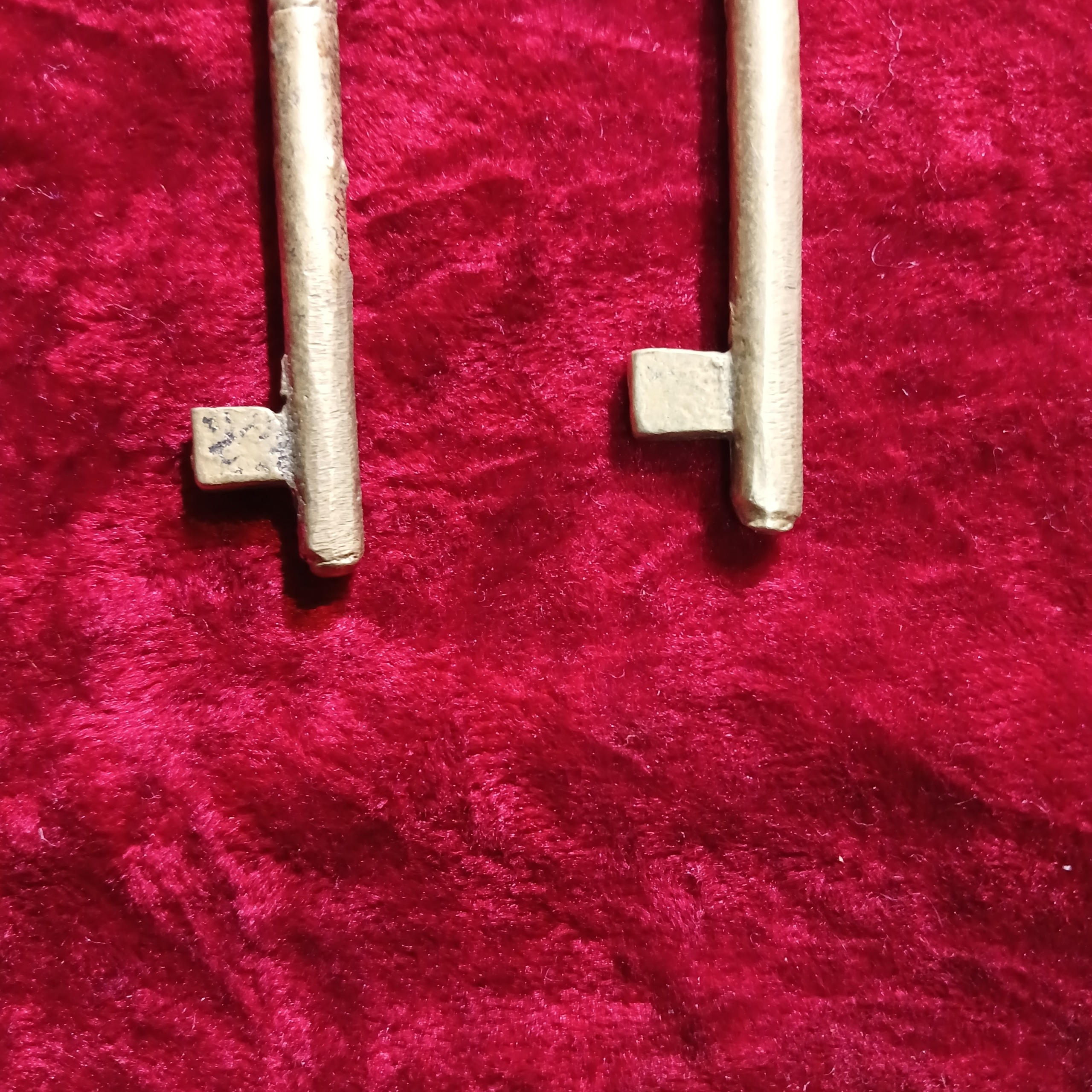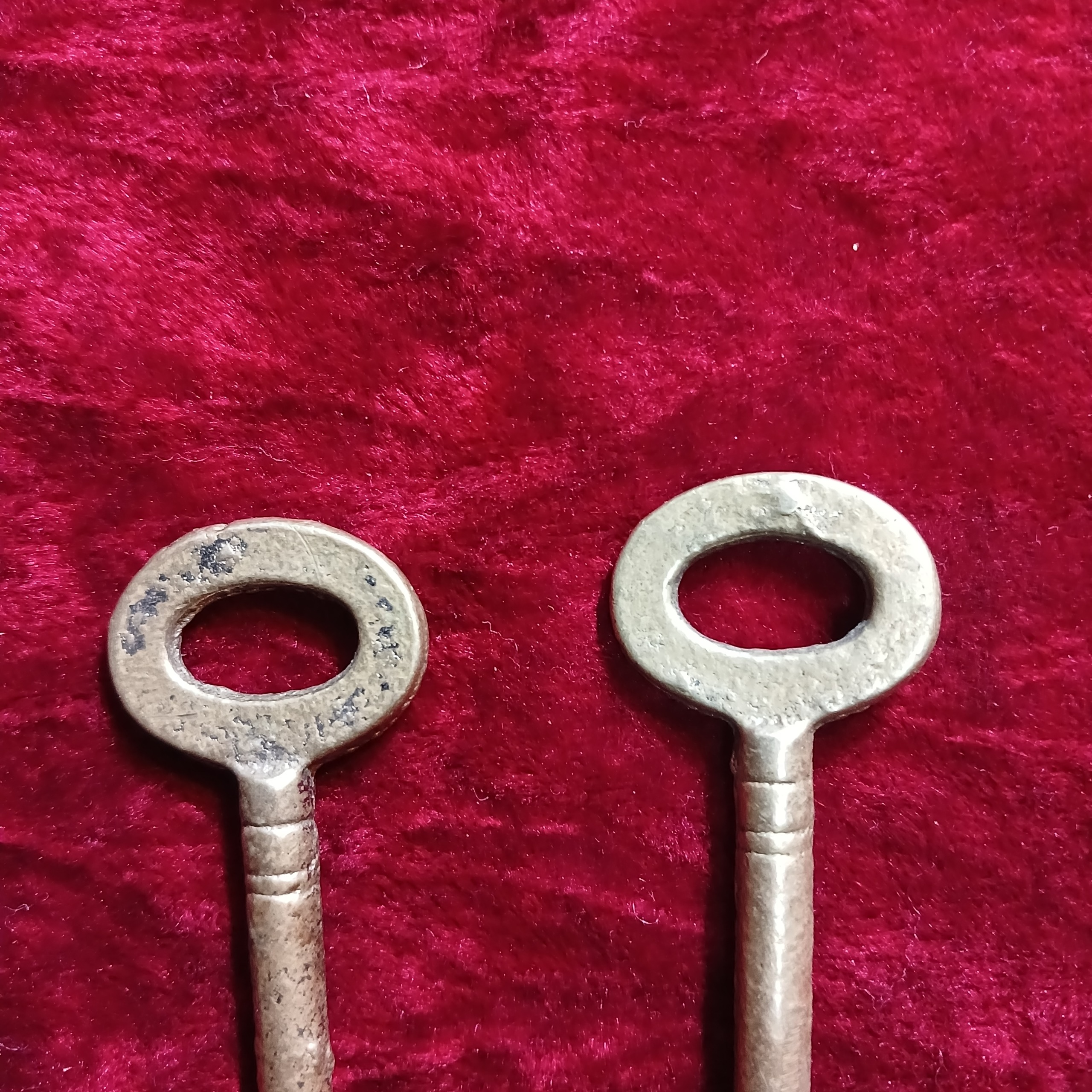 تعداد دو عدد کلید برنجی قدیمی سالم و بدون ایراد دست ساز مال زمان پهلوی مناسب برای درب های چوبی اتاق.
