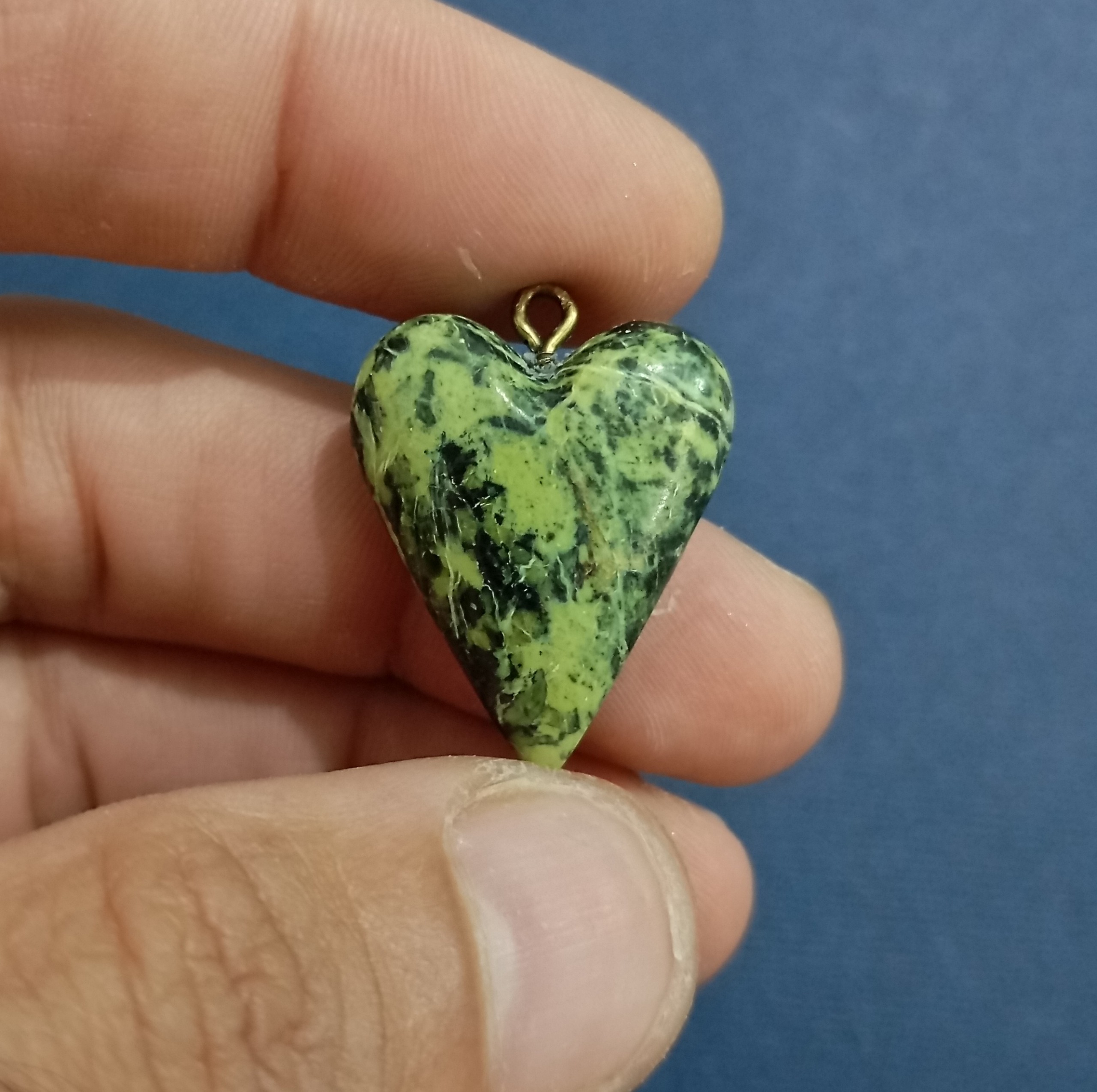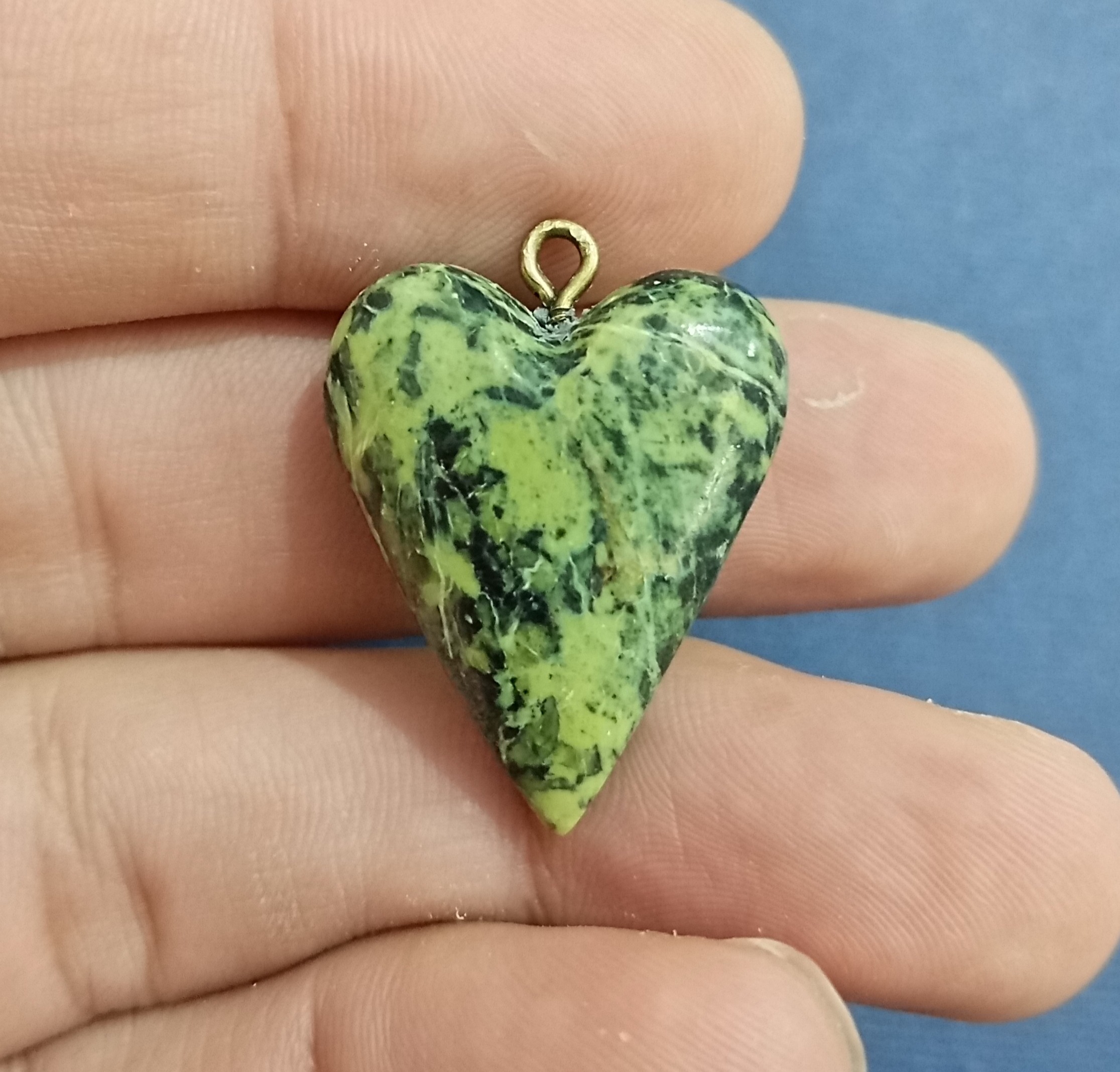 سنگ گردنی مارسنگ یا سرپانتین سبز طرح قلبی