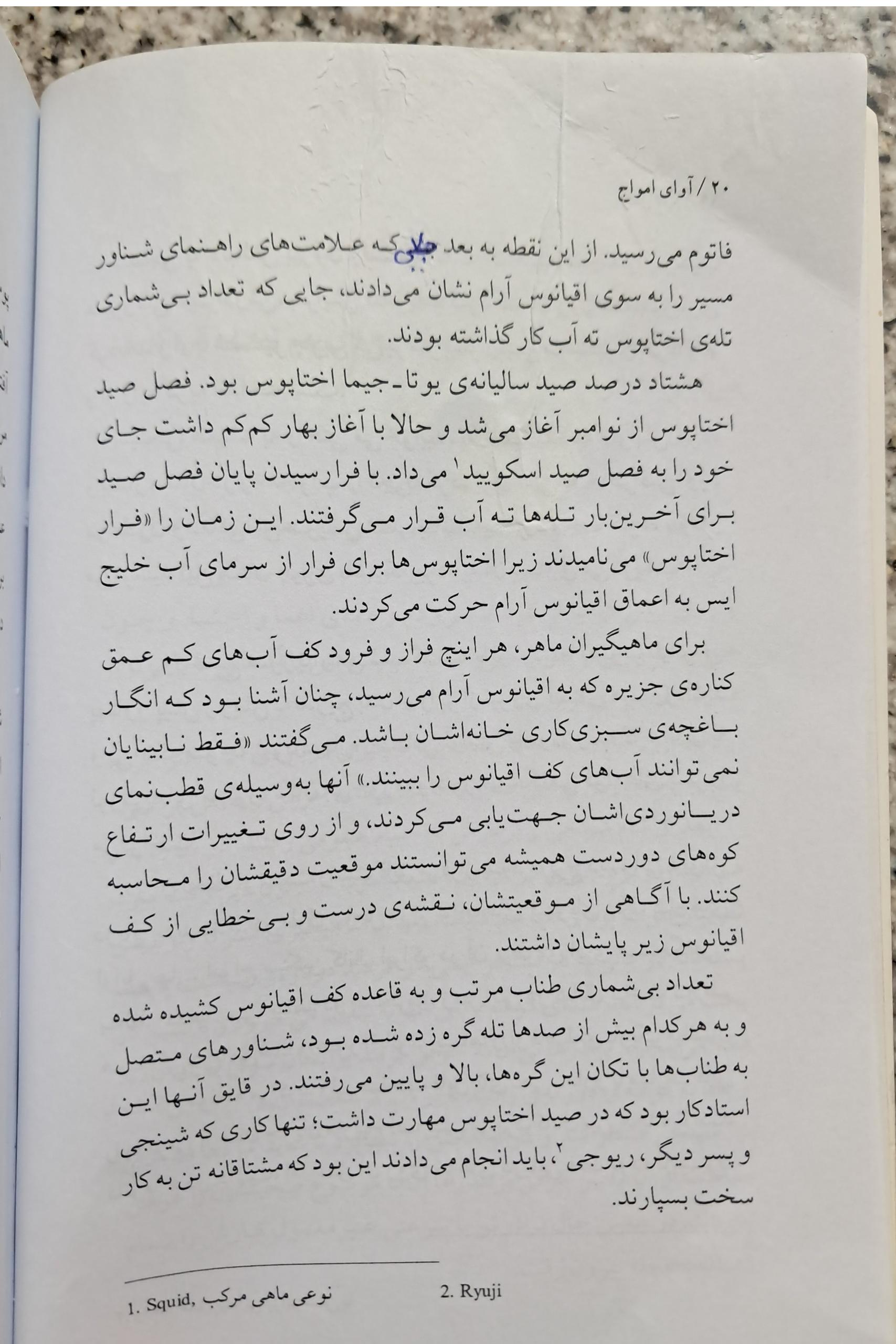 بر روی 2 ورق از کتاب لکه ای ناشی از رطوبت خوردگی ایجاد شده است که در تصاویر گذاشته ام و همچنین در صفحهٔ اول کتاب نوشته ای مختصر با خودکار وجود دارد که تصویر آنرا نیز گذاشته ام و بقیهٔ صفحات کاملا تمیزندـ