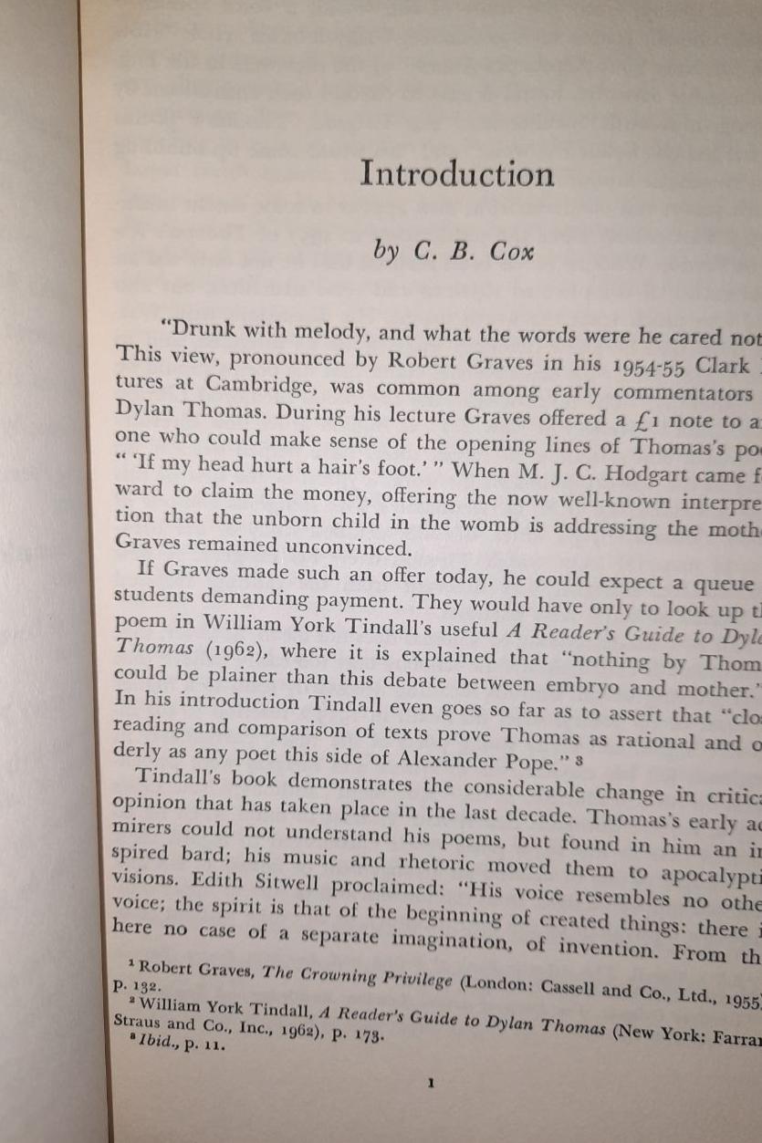 Dylan Thomas: A Collection of Critical Essays | Edited by C. B. Cox | 186 Pages | Spectrum, 1966.