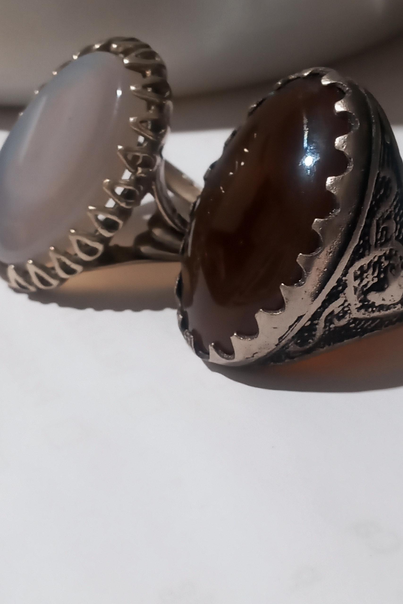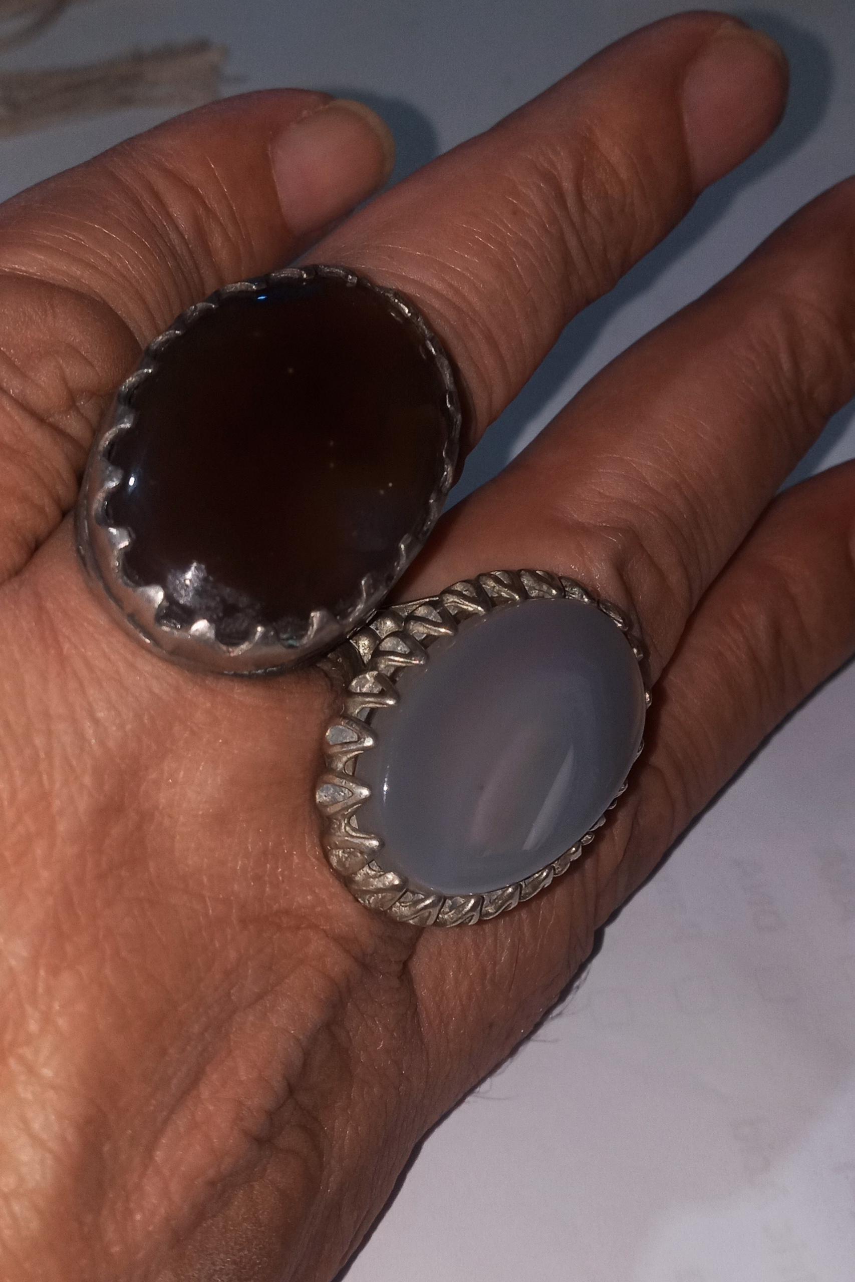 یکجفت انگشتر نقره هیبتی درشت دیدنی عقیق خراسان