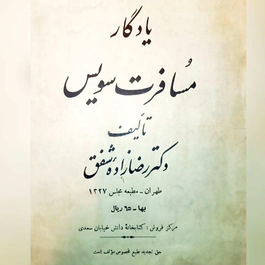 یادگار مسافرت سوئیس رضازاده شفق چاپ مجلس 1327