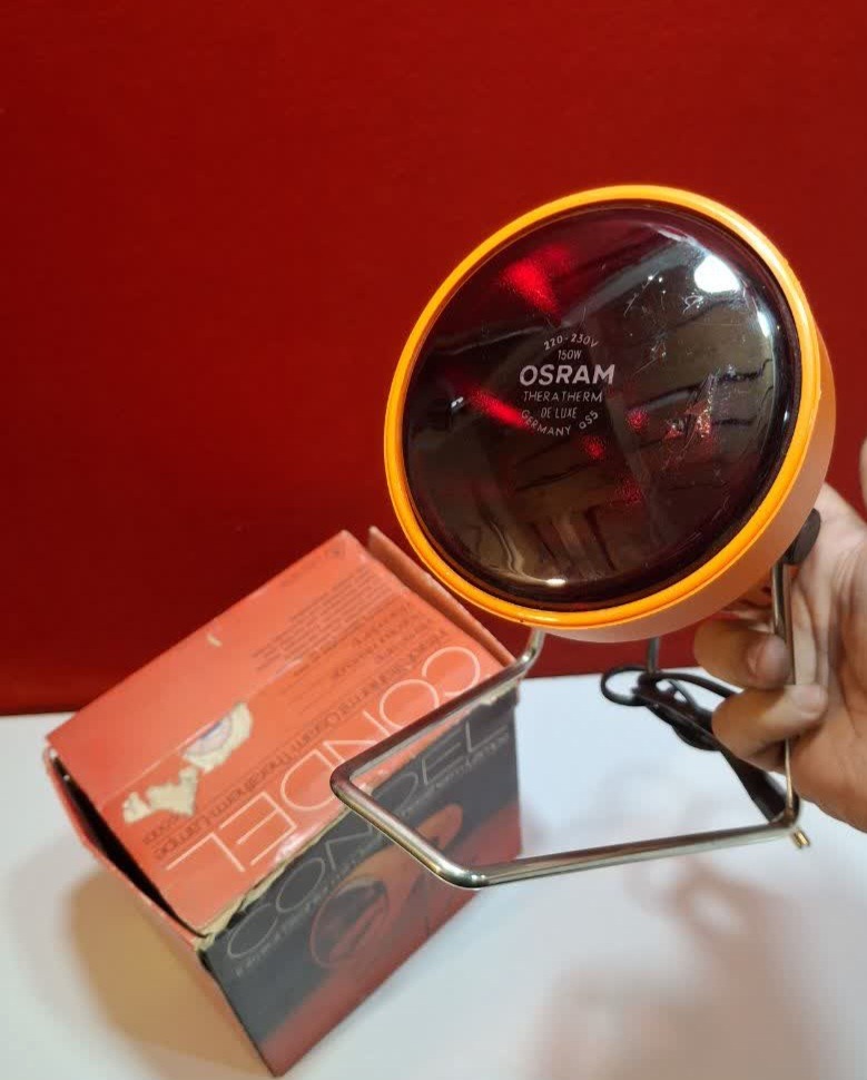 ساخت قدیم کشور آلمان برند معتبر آسرام برقی با جعبه اصلی مناسب گرمایشی روشنایی و درمان پا نارنجی رنگ پر قدرت کمیاب سالم تمیز طبق تصاویر لطفا دقت فرمائید.