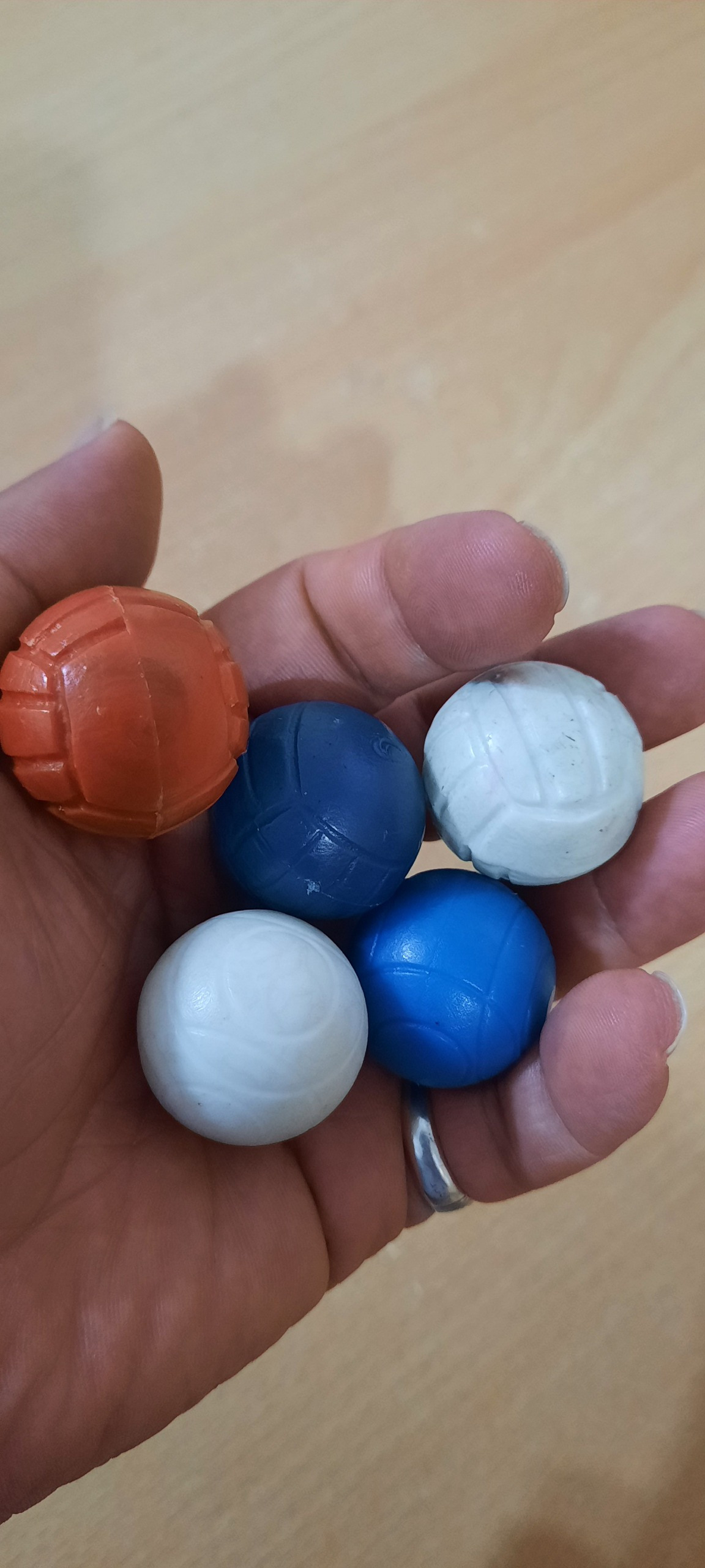 پنج عدد توپ فوتبال دستی سایز کوچک که برای اوایل دهه شصت هست. تکی فروخته نمیشه.مطابق تصاویر،کاملا سالم و تمیز قابل استفاده هست.
