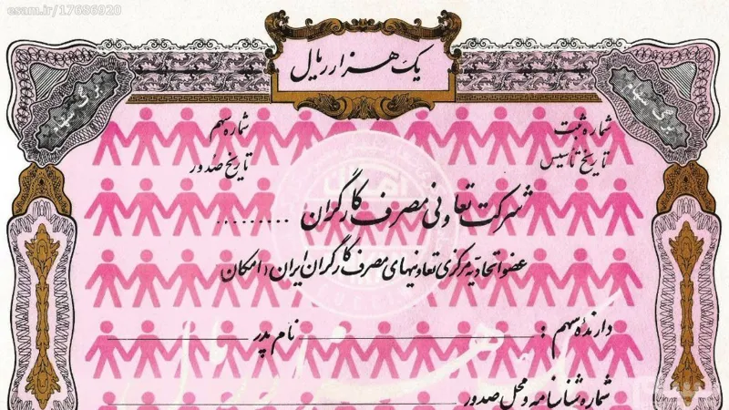 سهام یک هزار ریالی شرکت تعاونی مصرف کارگران