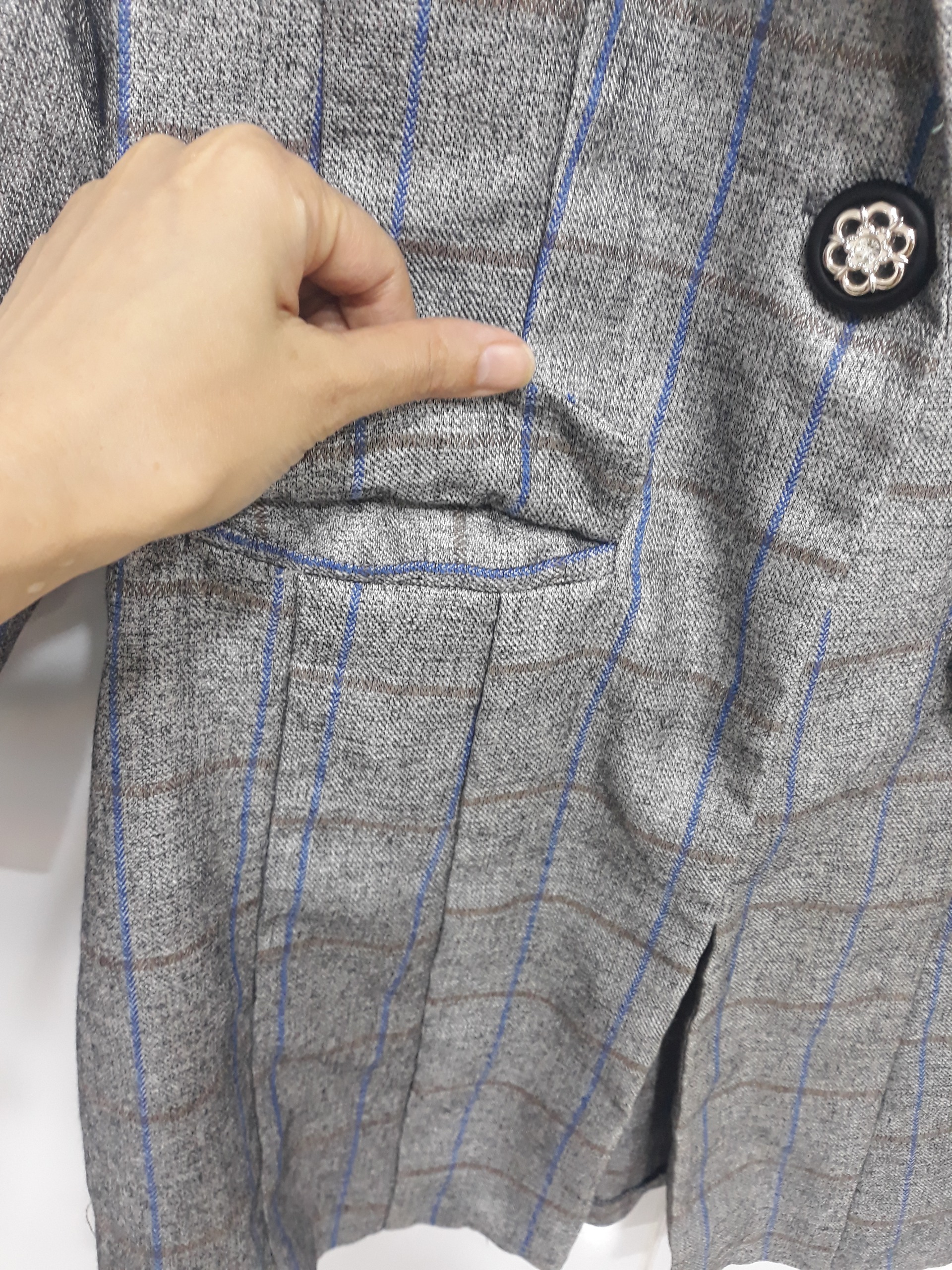 مانتو کتی جنس پارچه مکانیک درجه یک ضخیم جلو با تک دکمه بسته میشه جیپ ها نما هستن قد 77فاصله دو زیر بغل 50فری سایز از 40تا 44