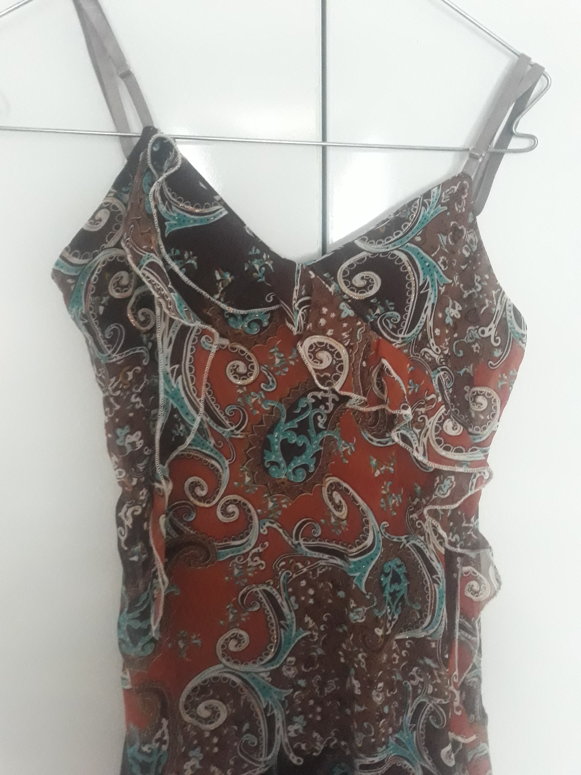 تاپ بلند زنانه جنس حریر آستر دار بند لباس زیری قابل تنظیم قد از سرشانه 100فاصله دو زیر بغل 45 مناسب سایز 38و 40