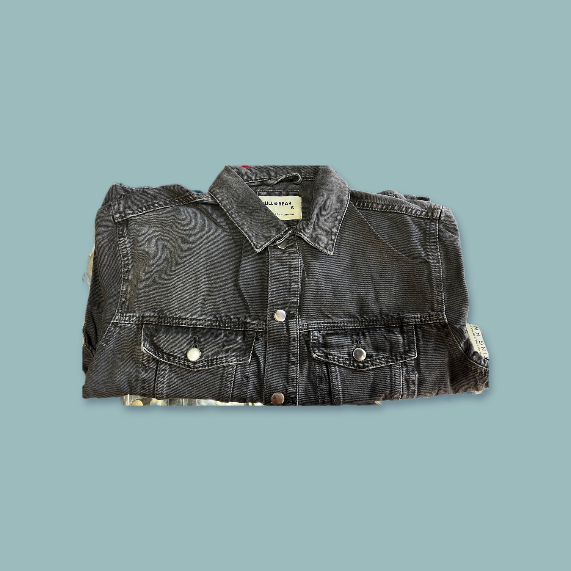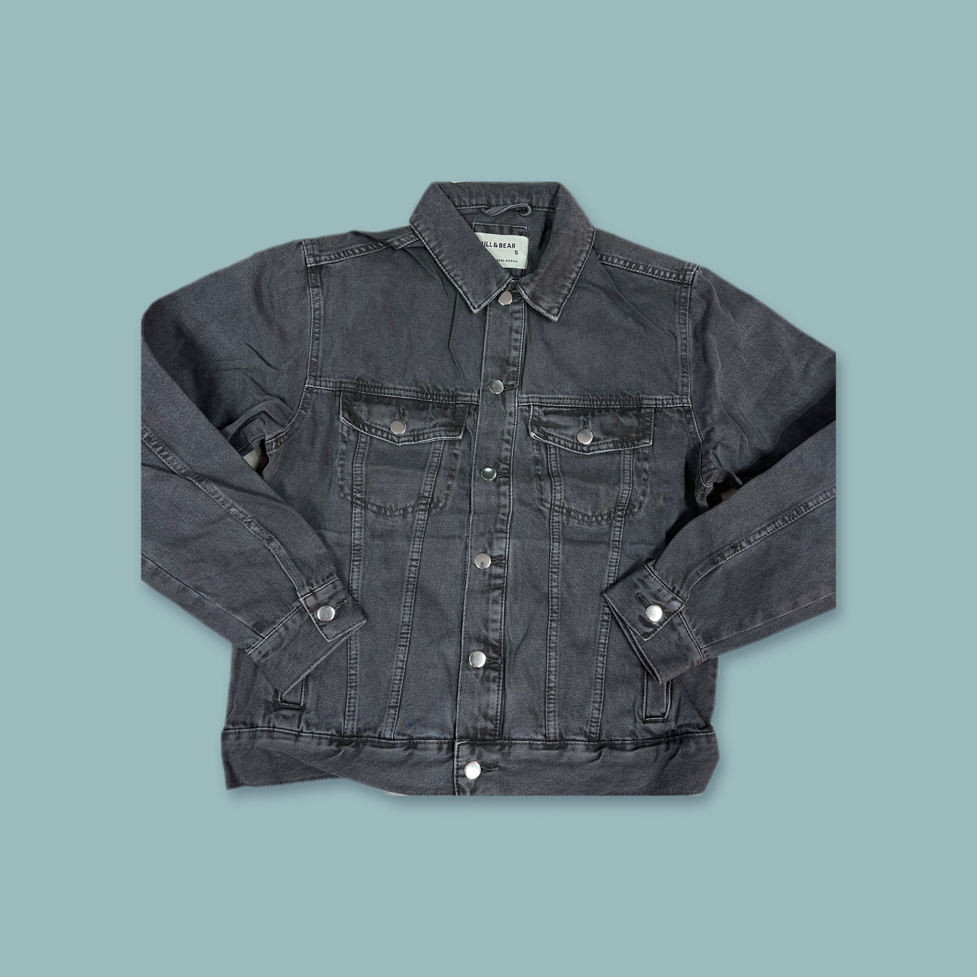 کاپشن لی خاکستری رنگ برند pull bear تولید کشور بنگلادش سایز اسمال بدون آبرفت و هیچ گونه تغغیر رنگ در صورت شستشو