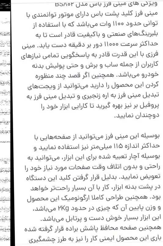 مینی فرز دسته بلند 2000وات صنعتی باس باتوان 1200 تا 2000 وات و قطر صفحه 115 میلیمتر و دارای قابلیت کنترل سرعت (دیمر دار) وسرعت گردش آزاد 11000دور دردقیقه ودارای قفل اسپیندال جهت تعویص صفحه و دارای موتور قدرتمند و مقاوم ودرعین حال کم صدا وهمینطور دارای کلید و بلبرینگ های ضد غبار وگردوخاک جهت افزایش طول عمردستگاه میباشد. همچنین این دستگاه باوزن تقریبی 2کیلوگرم بسیارخوش دست ودرجابجایی ها بسیار آسان میباشد.
