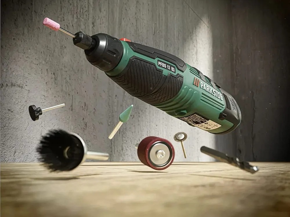 فرز انگشتی شارژی پارکساید مدل PFBS 12 B3 ، یک ابزار برای انجام کارهای ظریف مانند حکاکی، سنبادهکاری، برش و پولیش بر روی سنگ شیشه سرامیک اهن و ... است. این دستگاه با باتری لیتیوم یون 12 ولت (1300 میلیآمپر) و توان 100 وات، عملکرد قابل قبولی دارد و امکان تنظیم سرعت در بازهی 5000 تا 25000 دور در دقیقه را فراهم میکند. از دیگر ویژگیهای آن میتوان به قطر دیسک 25 میلیمتر، چاک مته 3.2 میلیمتر، کابل شارژ 1.5 متری USB-C و اقلام متنوع همراه جهت حکاکی اشاره کرد.