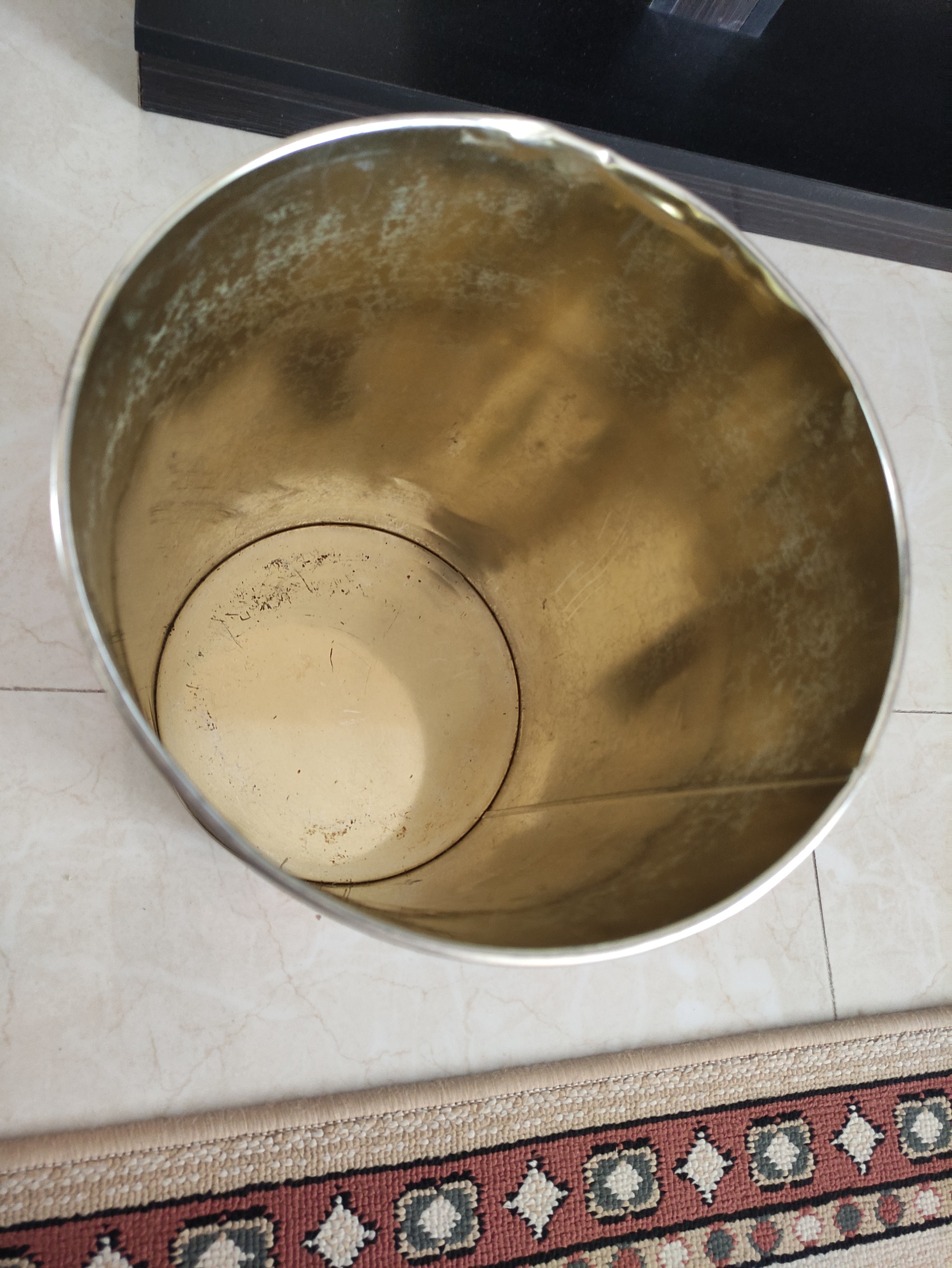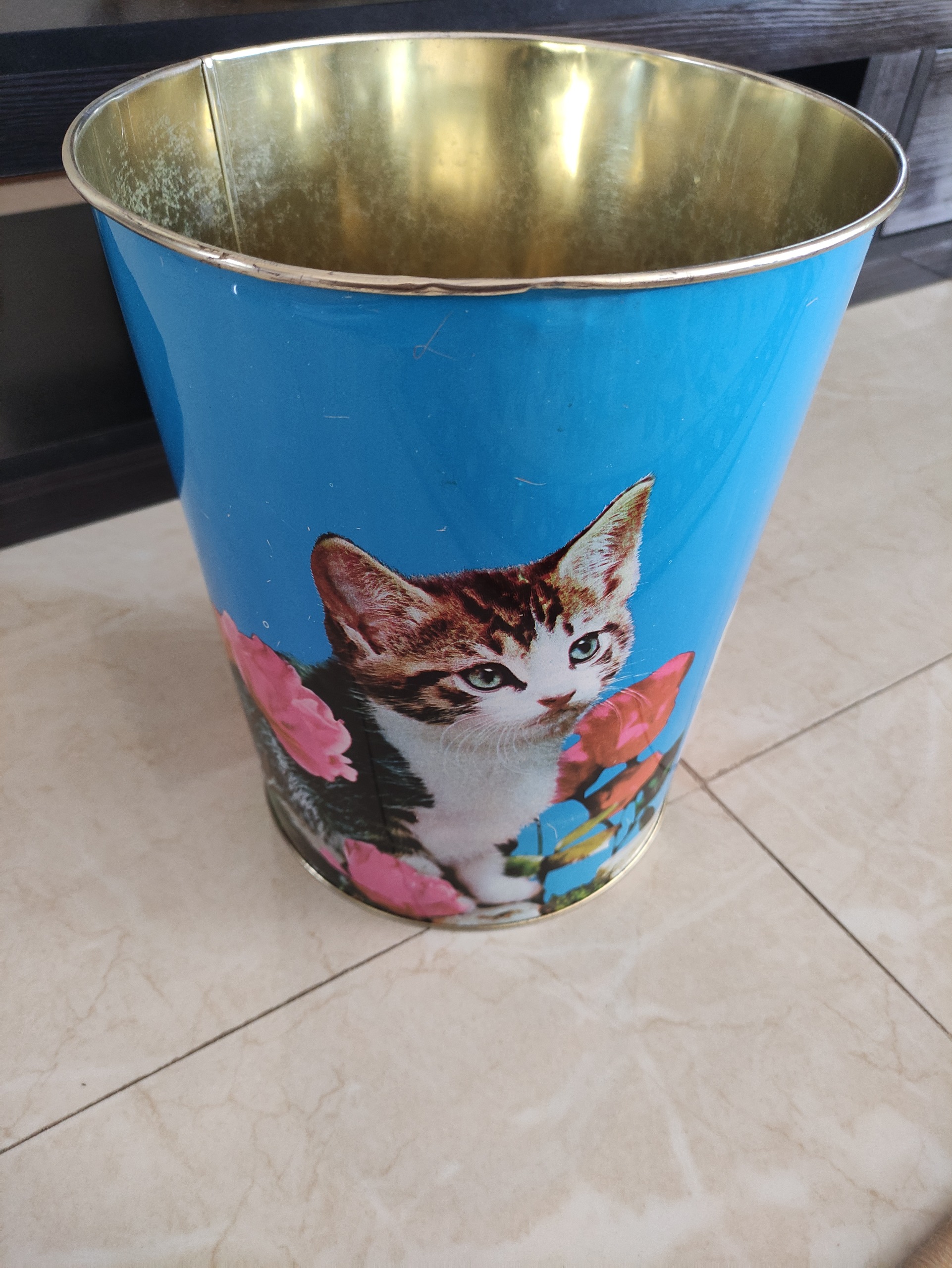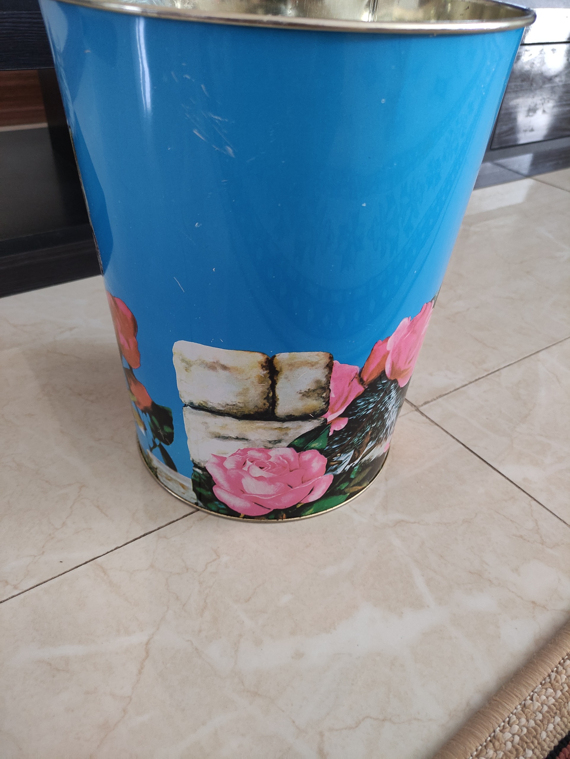 سطل مال دهه 60 هست سطل بلندی هست که حدودا 35 الی 40 سانت طول داره کف اون 20 سانت دهانه نزدیک 25 سانت من زدم دست دوم ولی کیفیت خوبی داره زنگ زدگی نداره داخلش فقط پاکت پست میگذاشتم لبه اپن یک سمتش کمی چروک داره از اولم اینطور بوده ولی کنار دیوار مشخص نیست