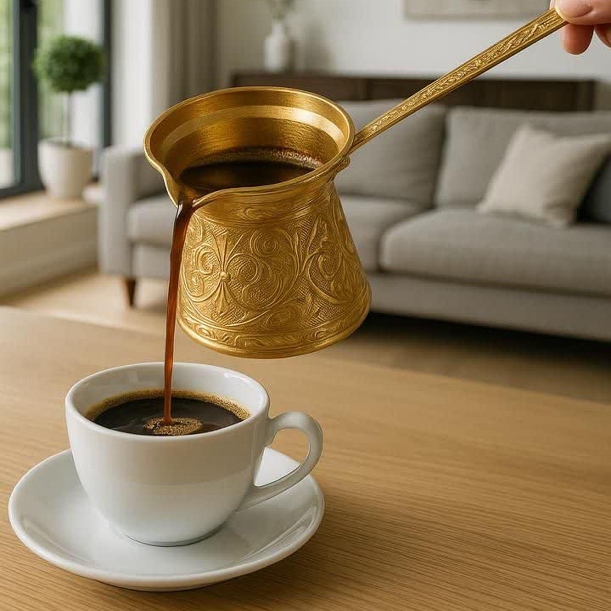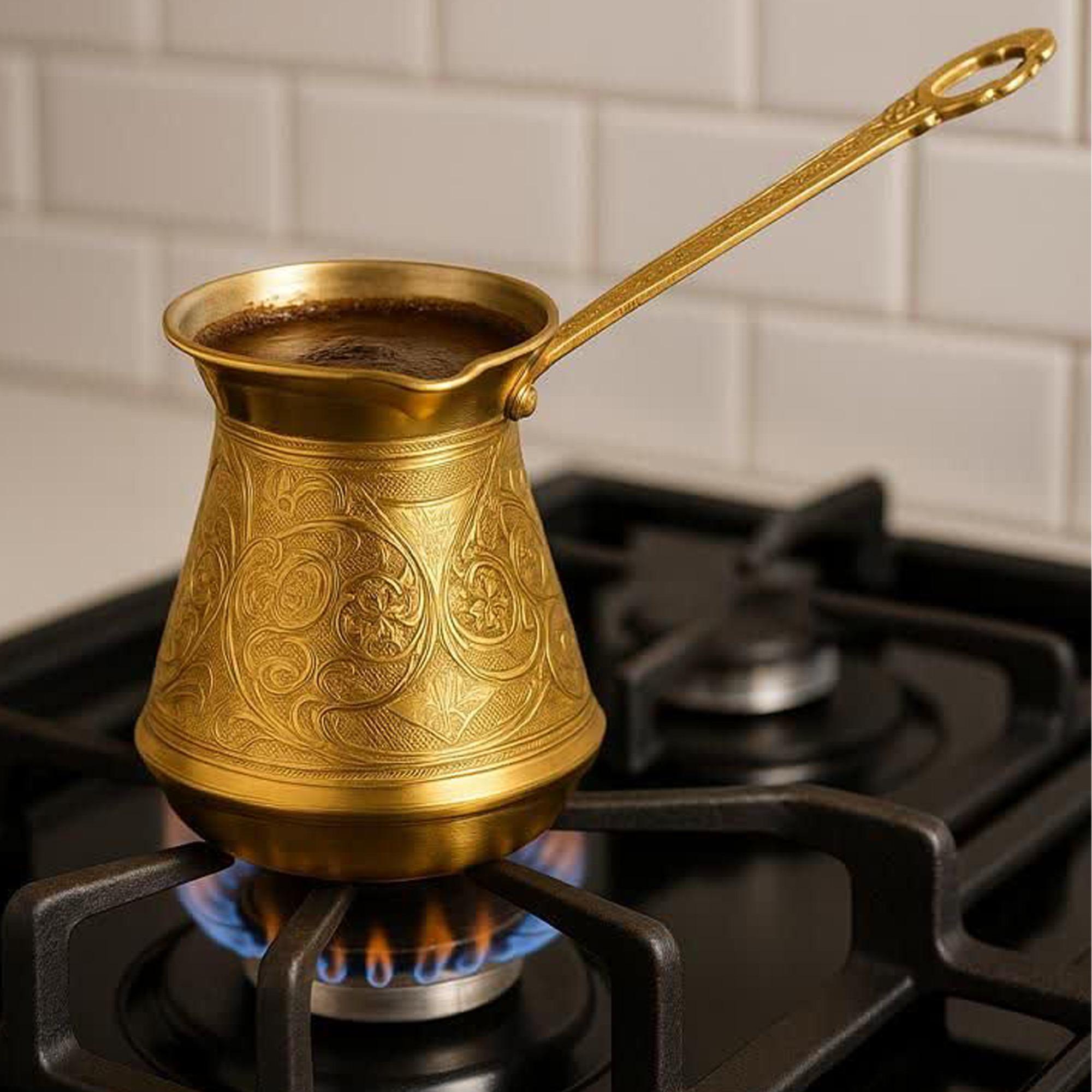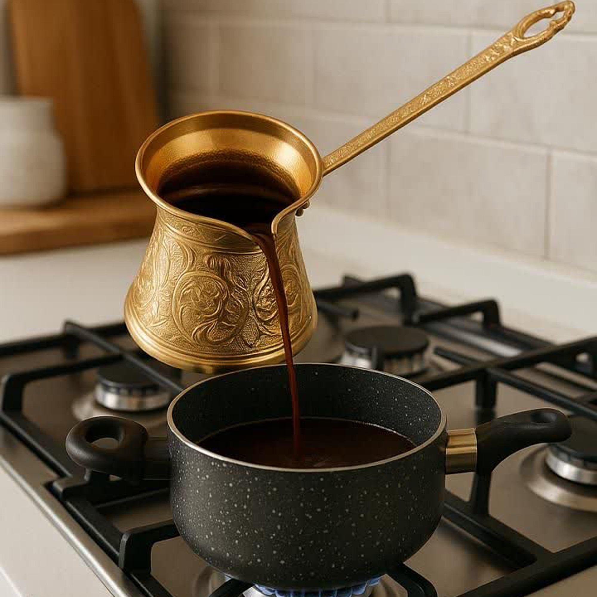 شیرجوش چدنی طرح مس - ساخت کشور ترکیه - با حرارت ملایم روی گاز به شما قهوه باکیفیت میده و در صورتیکه در ماشین ظرفشویی نگذارید و روی حرارت ملایم گاز بگذارید سالها میتوانید از آن استفاده کنید