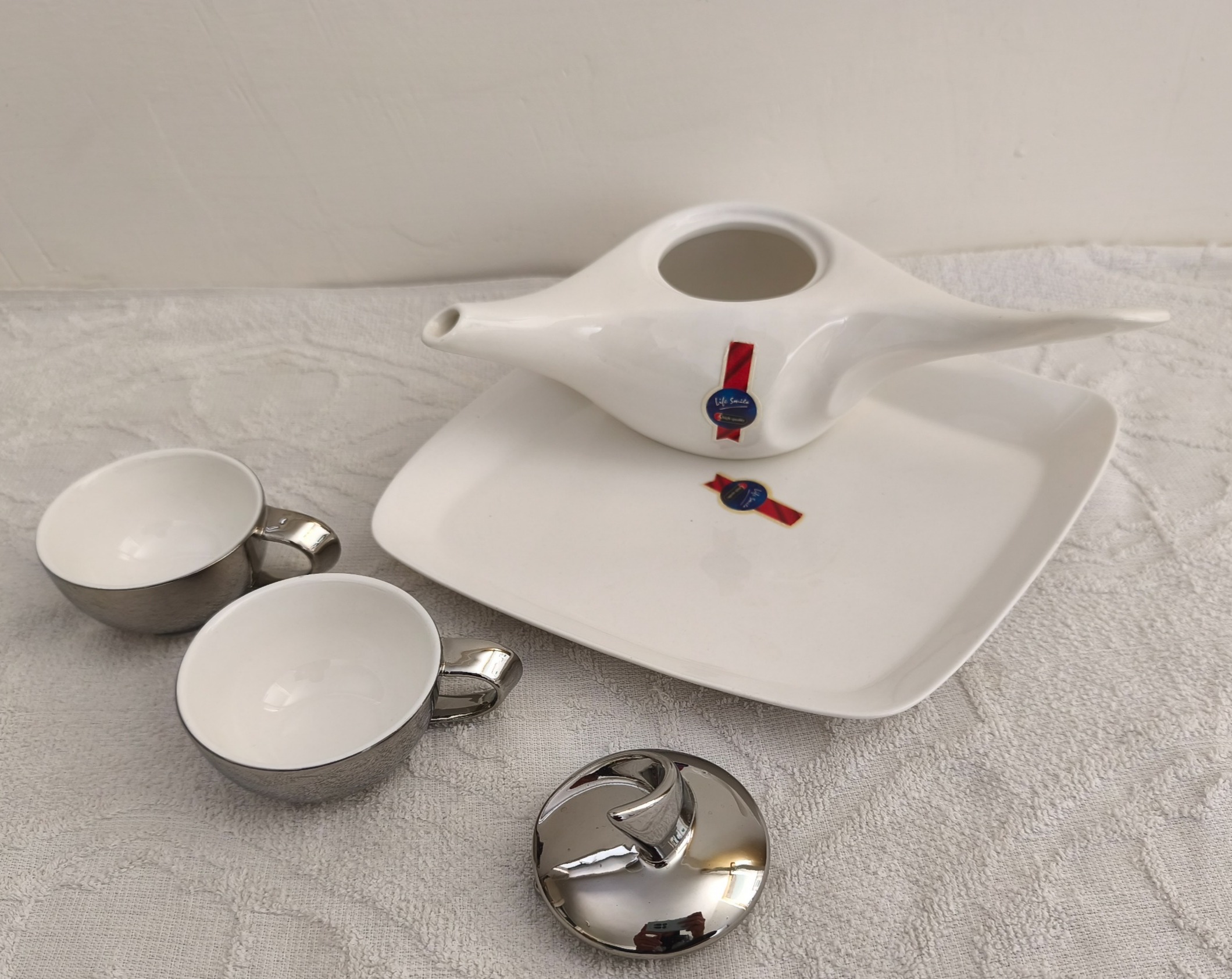 نیم ست چایخوری شامل قوری و سینی و دو عدد فنجان . ژاپنی . همراه با جعبه  _  مخصوص چای وقهوه