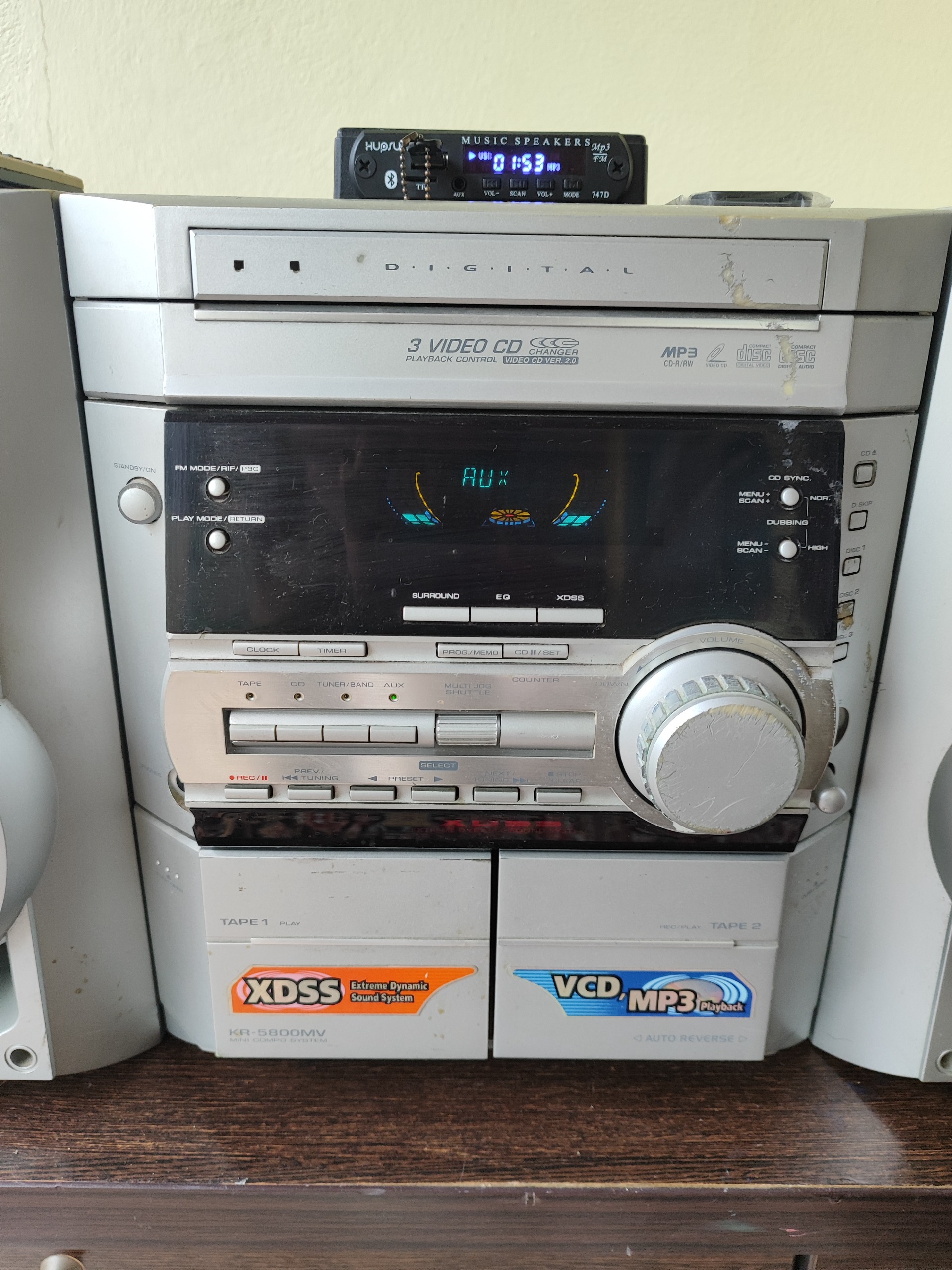 یک دستگاه ضبط خانگی ال جی با کنترل و یک جفت باند