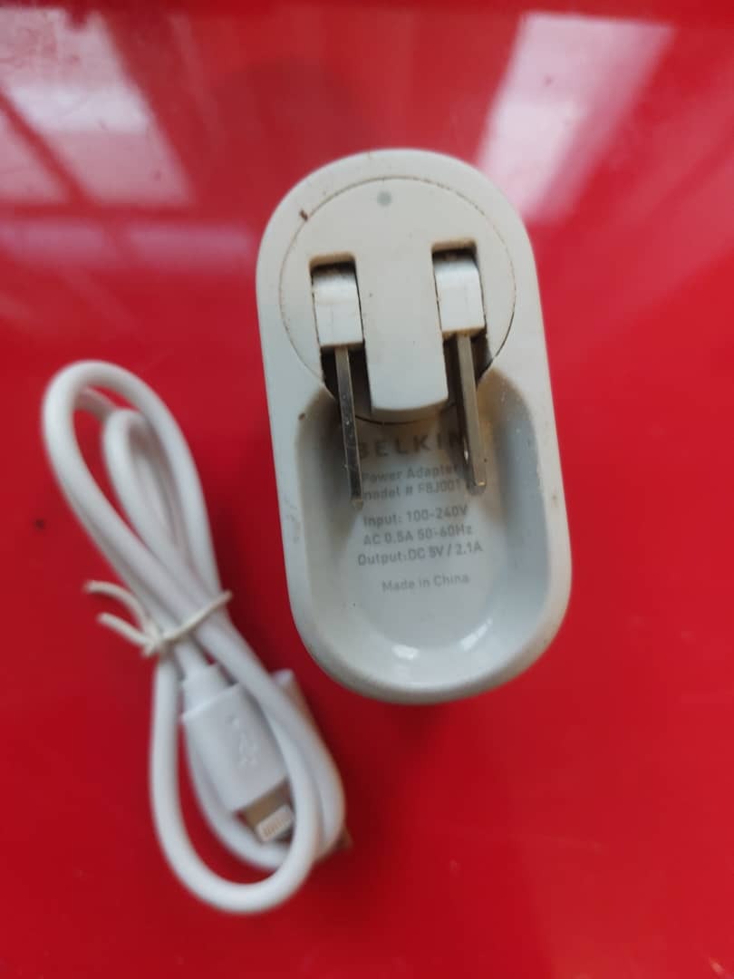 شارژر سریع Belkin F8J001 با ظرفیت 10 وات، پایه چرخان تاشو ، تک پورت USB، مناسب برای آیپد، آیفون و آیپاد، با ولتاژ 5 ولت و جریان 2.1 آمپر